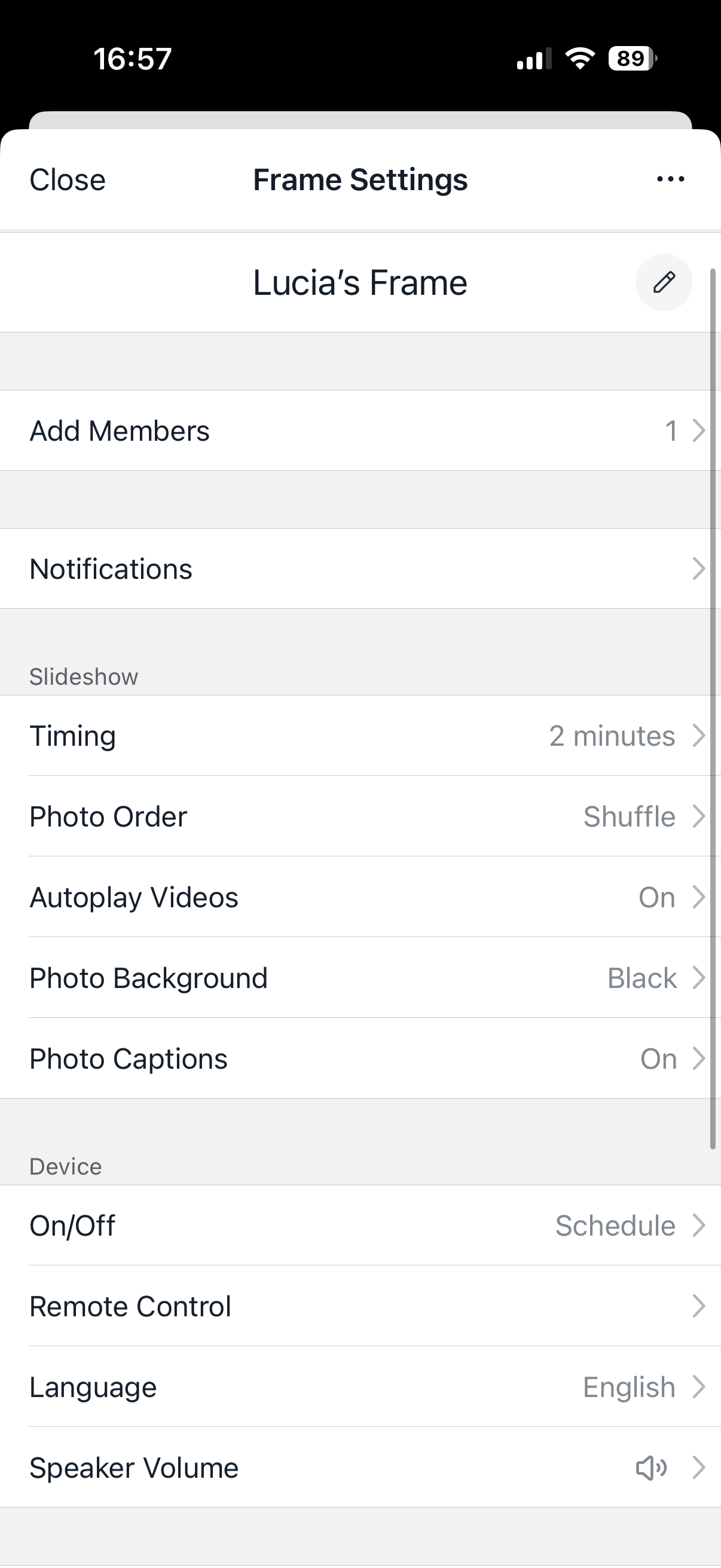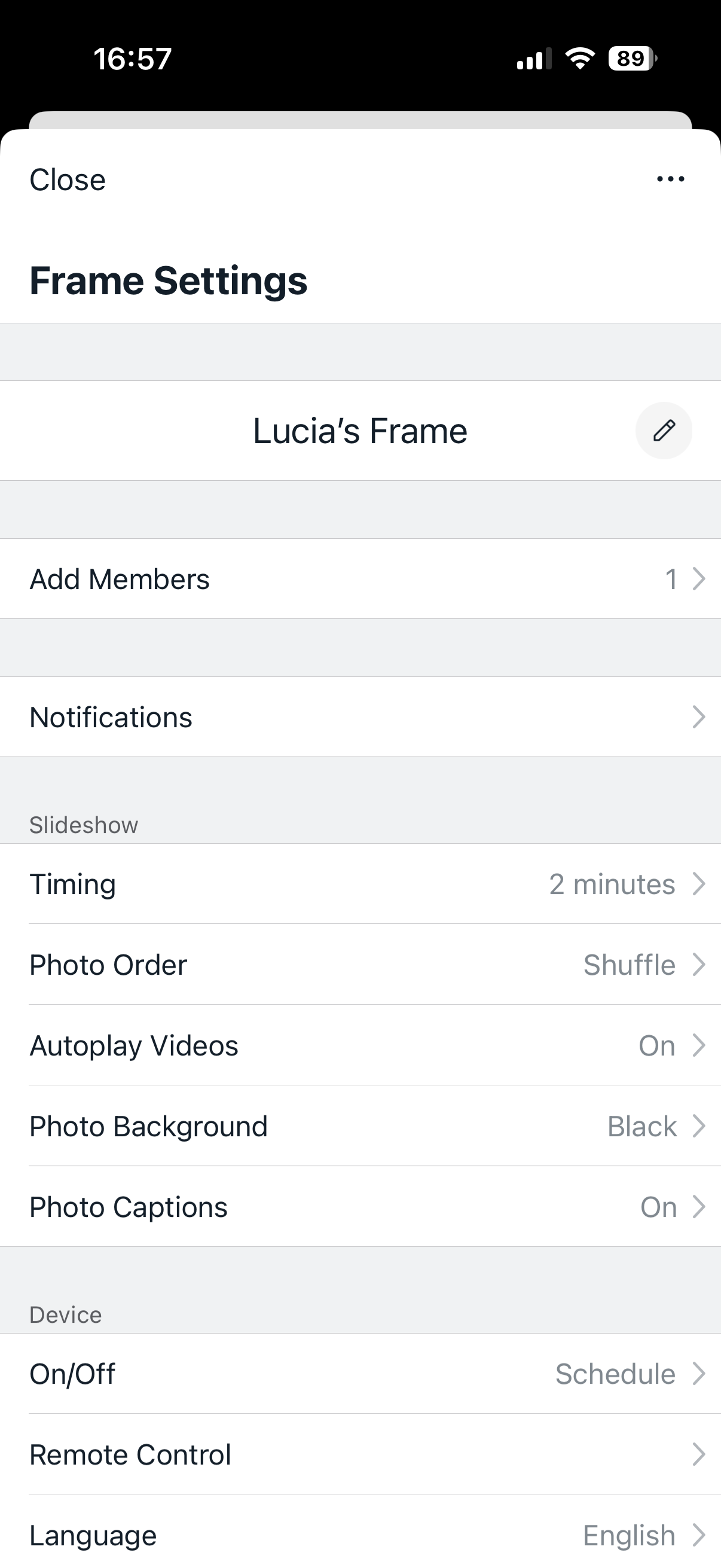 Aplikace zároveň nabízí poměrně široké možnosti přizpůsobení. Lze nastavit rychlost slideshow, způsob ořezu fotografií, preferenci orientace snímků nebo chování rámu během dne a noci. Samozřejmostí je automatická regulace jasu podle okolního světla, díky které rám ve večerních hodinách nepůsobí rušivě a v noci se může zcela vypnout. Zajímavou funkcí je také možnost pozvat další uživatele, kteří mohou do rámu přidávat své fotografie na dálku, což se hodí například při sdílení rodinných momentů mezi více domácnostmi. Z technického hlediska je Walden 15″ Ink Mat navržen velmi střídmě, ale funkčně. Rám je neustále připojený k internetu, automaticky se aktualizuje a nevyžaduje žádnou údržbu. Podporována jsou také krátká videa, která se mohou zobrazovat v rámci slideshow, i když hlavní důraz zůstává logicky na statických fotografiích. Celé řešení působí stabilně a promyšleně, bez nutnosti cokoli řešit manuálně.