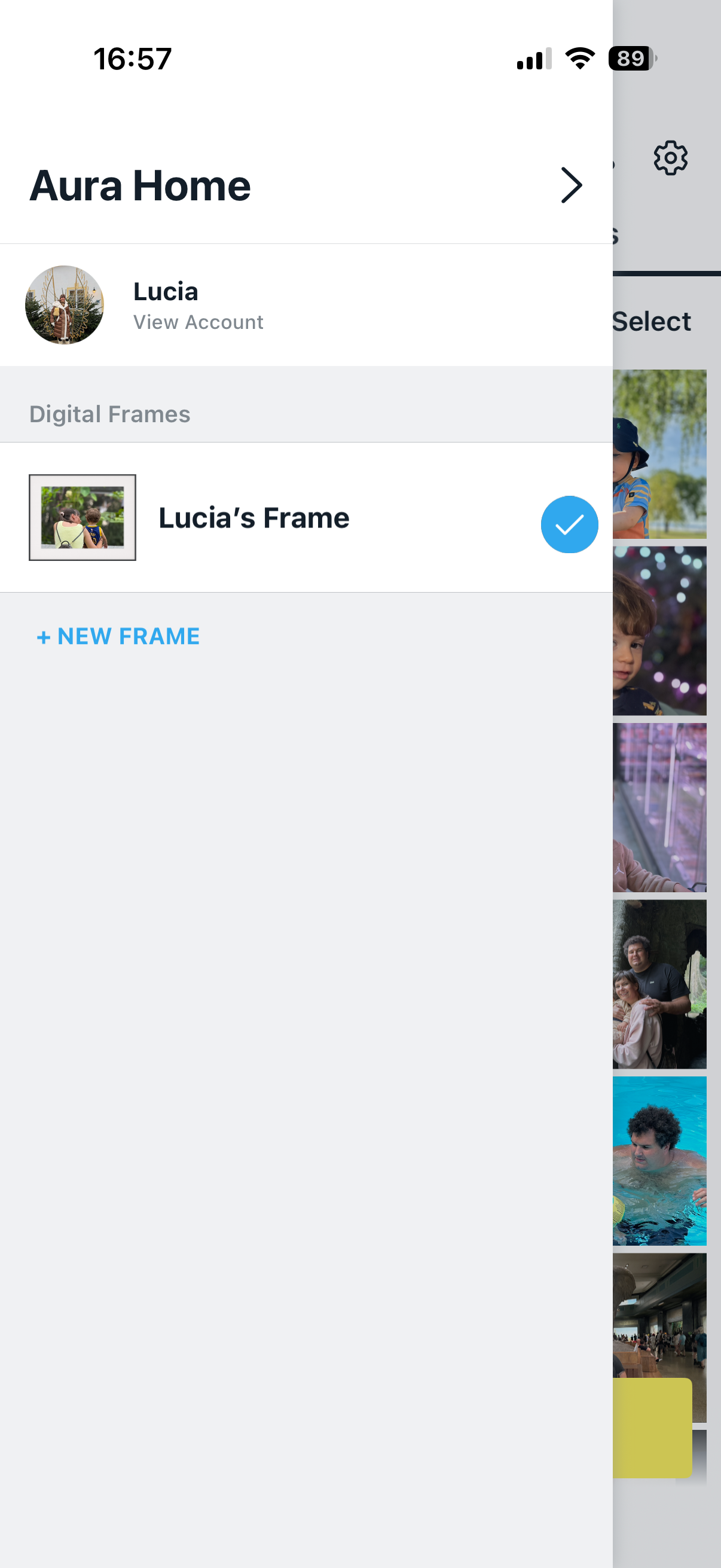 Zásadní roli v celém konceptu hraje mobilní aplikace Aura, která je dostupná pro iOS i Android. Veškeré nastavení i správa obsahu probíhá výhradně přes ni, samotný rám nemá žádná tlačítka ani složité ovládání s výjimkou dotykového panelu, přes který lze posouvat mezi fotografiemi a nebo vybranou fotografii zastavit a trvale zobrazit. Po připojení k domácí Wi-Fi a spárování s účtem je možné během několika minut začít nahrávat fotografie a vytvářet alba. Aplikace funguje spolehlivě a přehledně, bez zbytečných prvků, které by uživatele rozptylovaly.