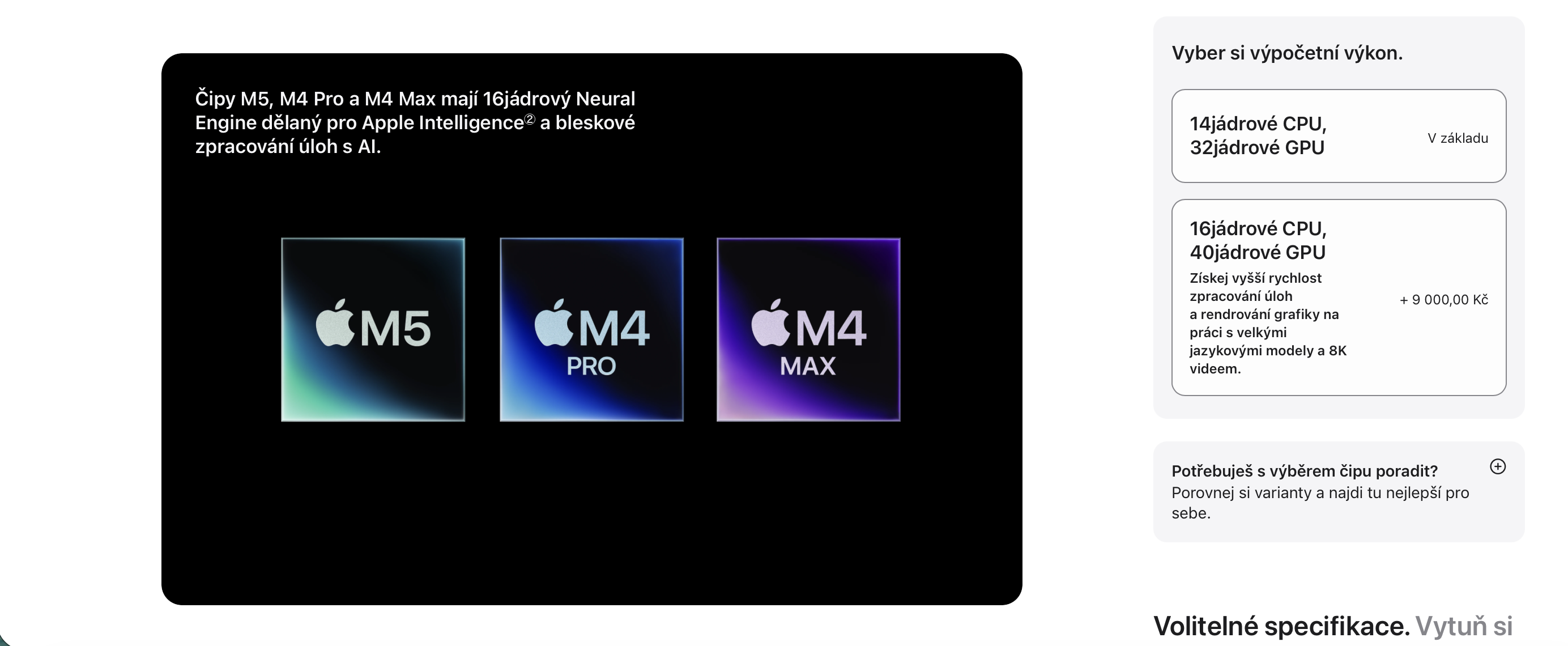 Apple v tichosti upravil ve svém online obchodě proces objednávání Maců. Změna se týká celé nabídky. Tedy od MacBooku Air a MacBooku Pro až po iMac, Mac mini, Mac Studio a Mac Pro. Jablečná společnost sjednocuje způsob konfigurace s tím, jak dnes funguje objednávání iPadů. Zatímco dříve Apple nabízel několik předem připravených konfigurací, ze kterých bylo možné následně vycházet, nyní si musí zákazník sestavit každý Mac kompletně od základu. Objednávací proces začíná volbou velikosti displeje a barvy, pokračuje případným výběrem nano-texturovaného skla a následně volbou konkrétního čipu řady M a jeho konfigurace. Na závěr přichází na řadu operační paměť, úložiště, napájecí adaptér a jazyk klávesnice. Výsledkem je tak přístup, který nabízí větší flexibilitu. Ale zároveň může působit méně přehledně pro nezkušené zákazníky. Co na změnu říkáte?