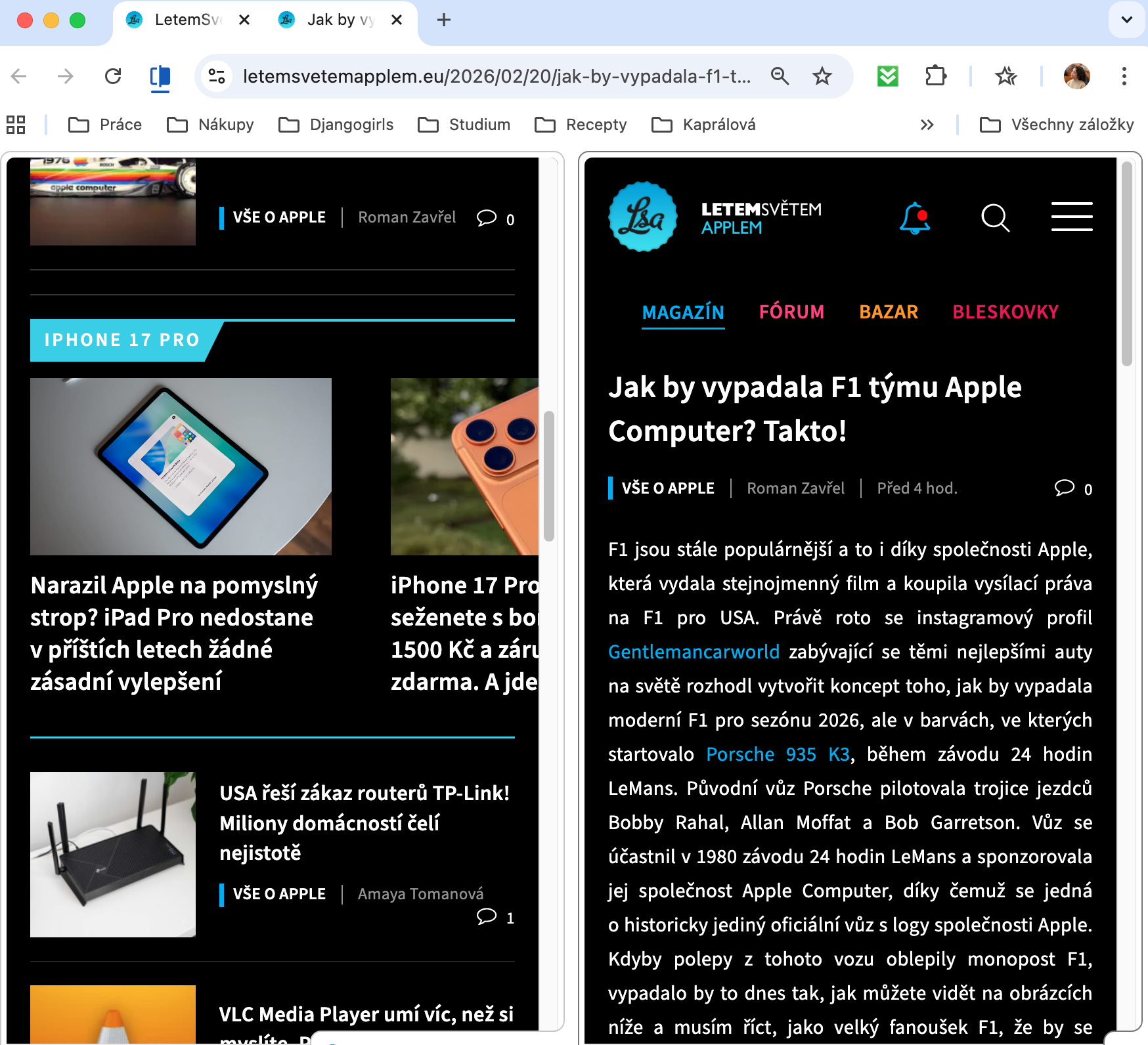 Pro běžnou práci to znamená například možnost mít vlevo otevřený zdrojový článek a vpravo dokument, do kterého se píše text. Nebo porovnávat dvě nabídky, dvě verze smlouvy či dvě produktové stránky bez neustálého přepínání. Doposud šlo něčeho podobného dosáhnout jen pomocí dvou oken vedle sebe. Integrované řešení je jednodušší a hlavně přehlednější.