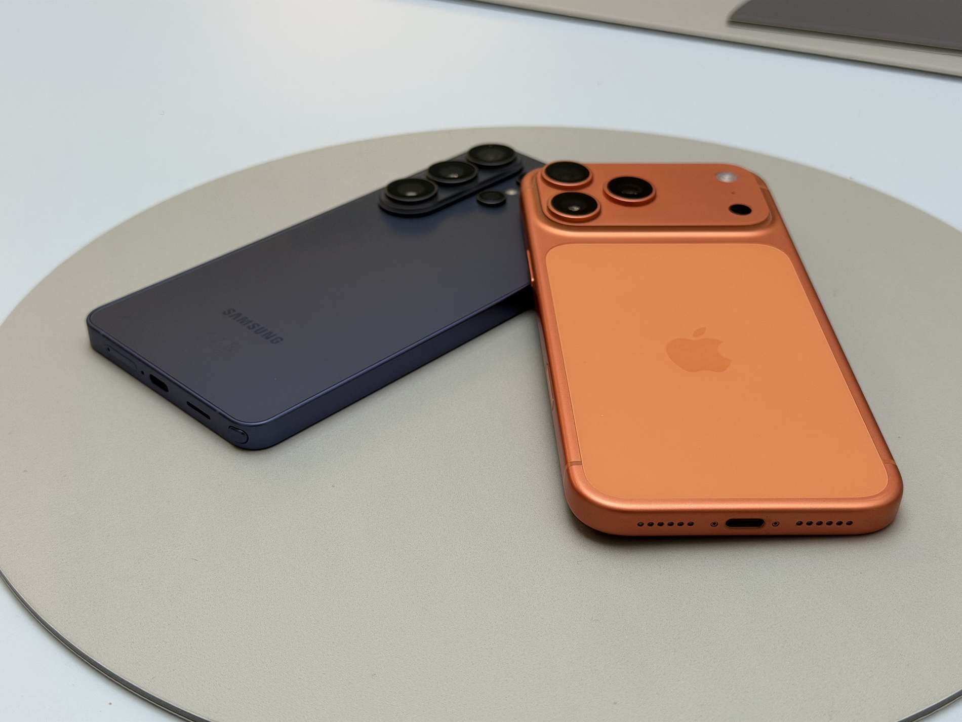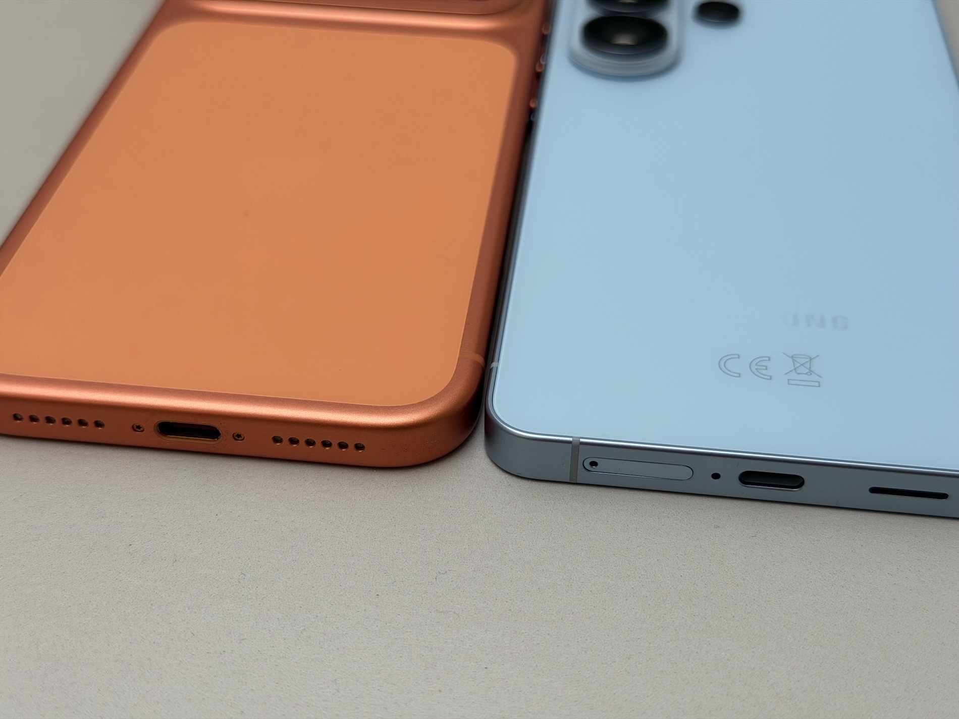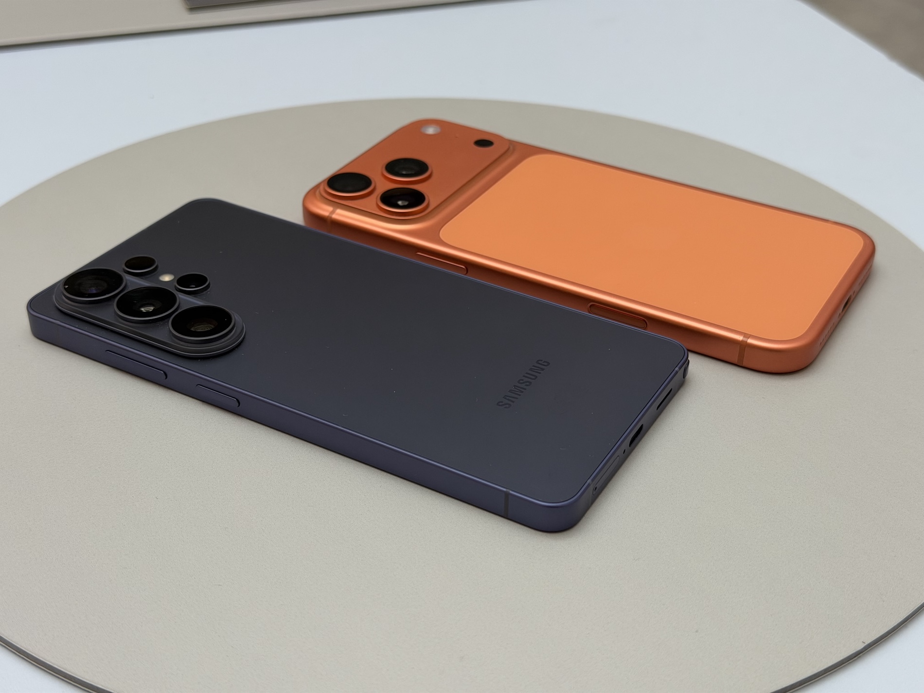 Oproti iPhonu je ale skutečně lehčí a také tenčí, což poznáte na první dobrou. A i když má nově modul fotoaparátů, je ten rozhodně decentnější jak masivní výstup iPhonu. Oba mají odolnost podle IP68, Apple ale uvádí hloubku 6 metrů, Samsung hloubku 1,5 metrů, ve které voda do útrob telefonu nepronikne po dobu 30 minut. Hlavní barvou Samsungu je fialová, Applu zase oranžová. A obě mají něco do sebe.