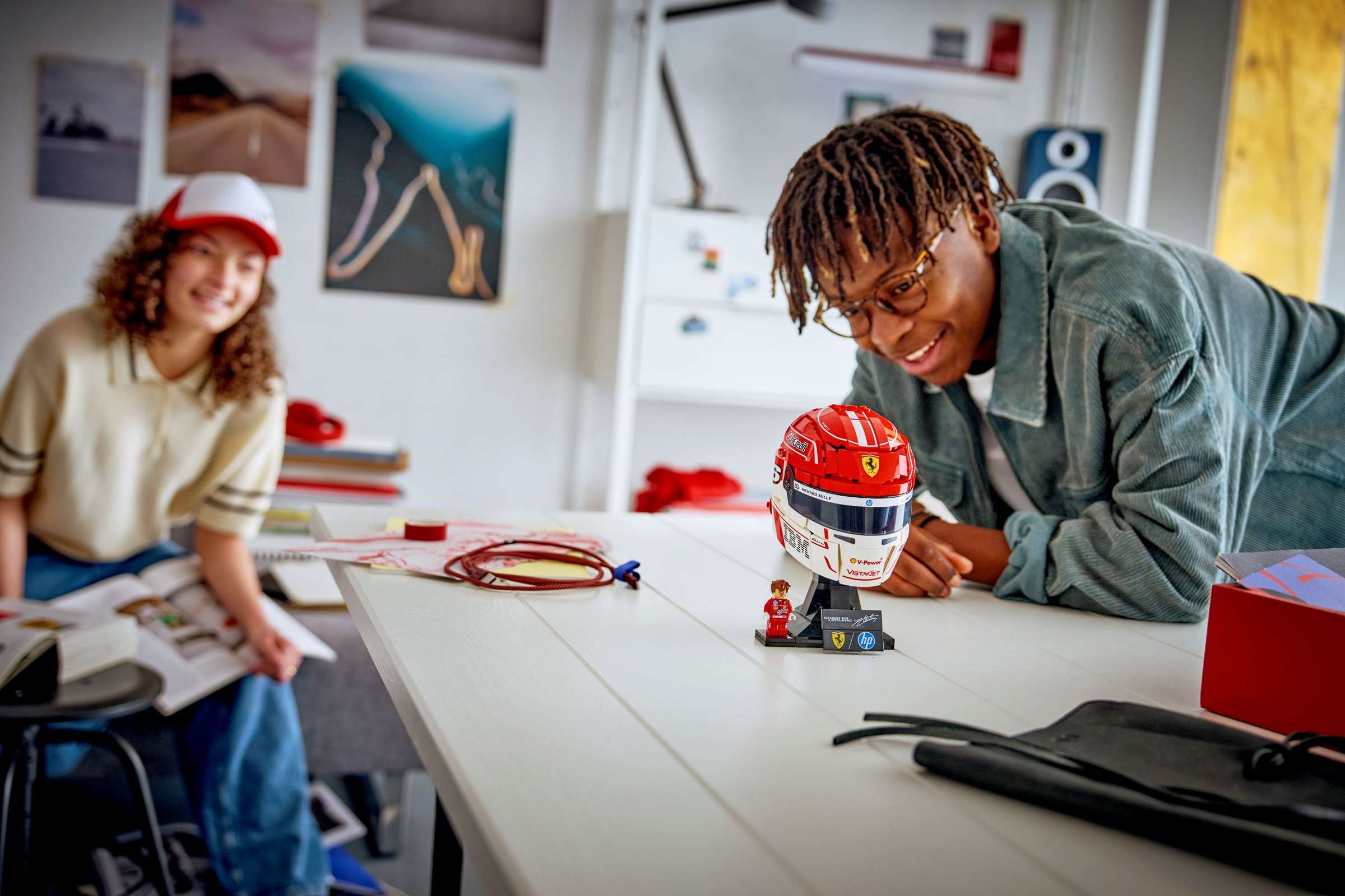 Charles Leclerc je zastoupen helmou ve slavné Ferrari Rosso Corsa. Model má 886 dílků, obsahuje tištěné detaily s jeho číslem a cedulkou s podpisem, a samozřejmě minifigurku jezdce. Po sestavení se helma stává exkluzivní dekorací, ideální vedle dalších helem LEGO F1® nebo jako samostatný kousek do sbírky. Aplikace LEGO® Builder opět umožňuje postupovat po krocích a prohlížet si model ze všech úhlů.