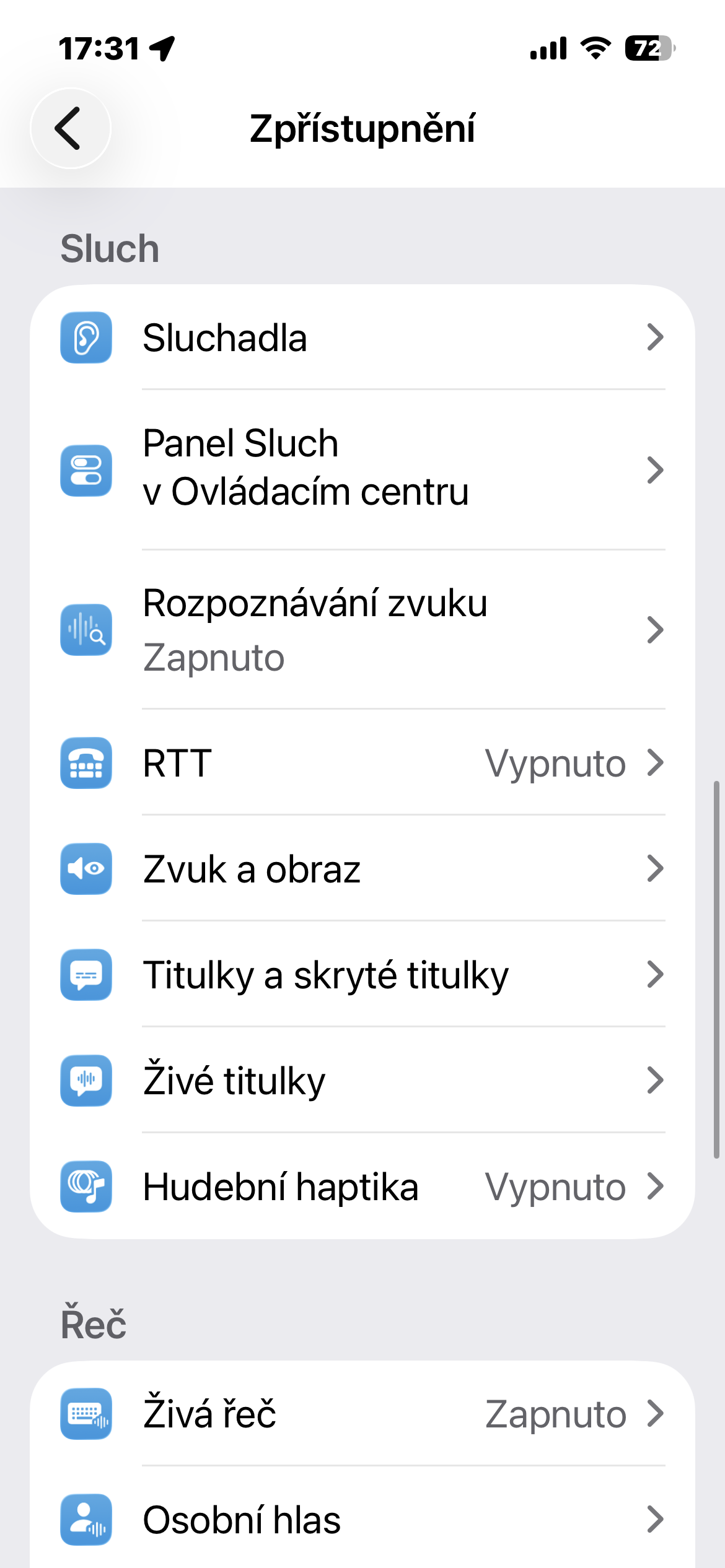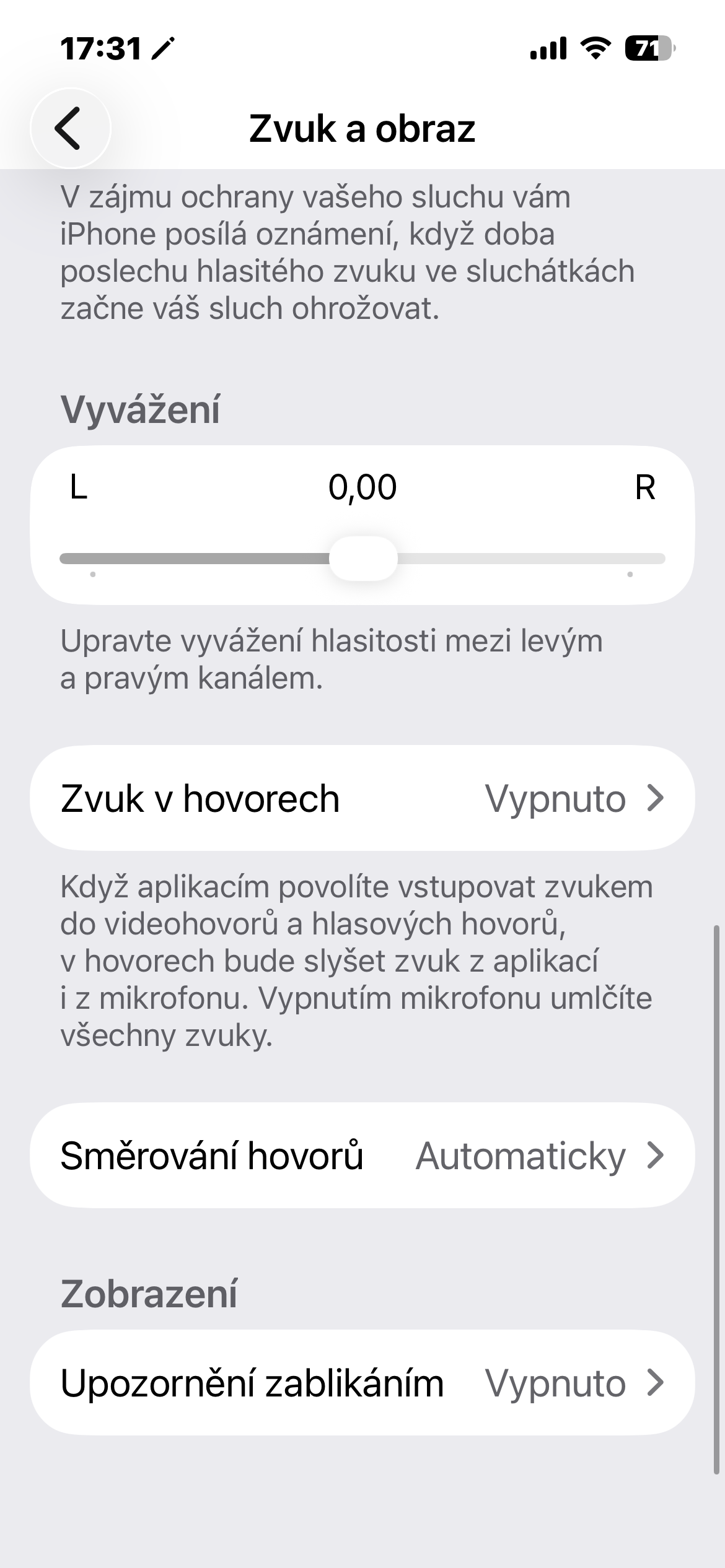 - V sekci Sluch zvolte Zvuk a obraz.