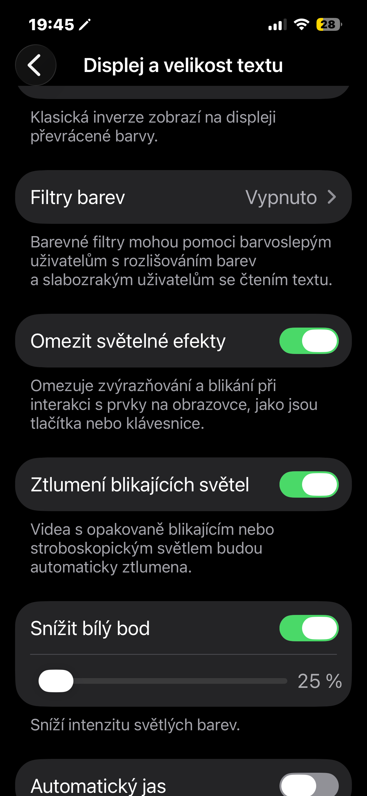 Nové nastavení najdete v Nastavení → Zpřístupnění → Displej a velikost textu, kde stačí zapnout přepínač Omezit světelné efekty. Jakmile jej aktivujete, systém začne některé záblesky a světelné reakce tlumit, takže prostředí působí klidněji a méně rušivě.