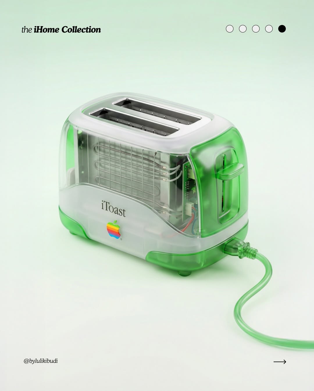 Krátce po té, co se Steve Jobs v roce 1997 vrátil do vedení, začal Apple používat zcela nový design. Po označením Bondi Blue translucent design a později fruit colors se začaly objevovat produkty jako iBook, eMac nebo dokonce klávesnice a myši. Za vším stál Jony Ive, ze kterého udělal Jobs šéfa designu celého Apple. Až do roku 2003 používal Apple právě tento design, ze kterého později přešel na hliník. Do dnes však právě produkty jako iBook nebo eMac patří mezi ty, na které se můžeme zajít podívat do světových designových galerií a právě proto se staly inspirací pro designérku vystupující na instagramu pod přezdívkou bylulikibudi, která se tímto designem nechala inspirovat a představila vlastní iHome Collection, ve které najdete iFry, iHeat, iCoffe a také iToast. Design produktů vypadá naprosto perfektně a kávovar bych si s chutí dal i dnes do kuchyně. Ostatně podívejte se sami jak skvěle by tyto produkty vypadaly, kdyby je Apple skutečně vyráběl.