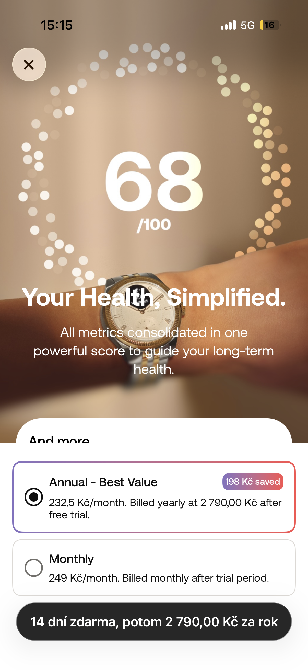 - pokročilejší analýza vyžaduje předplatné Withings+