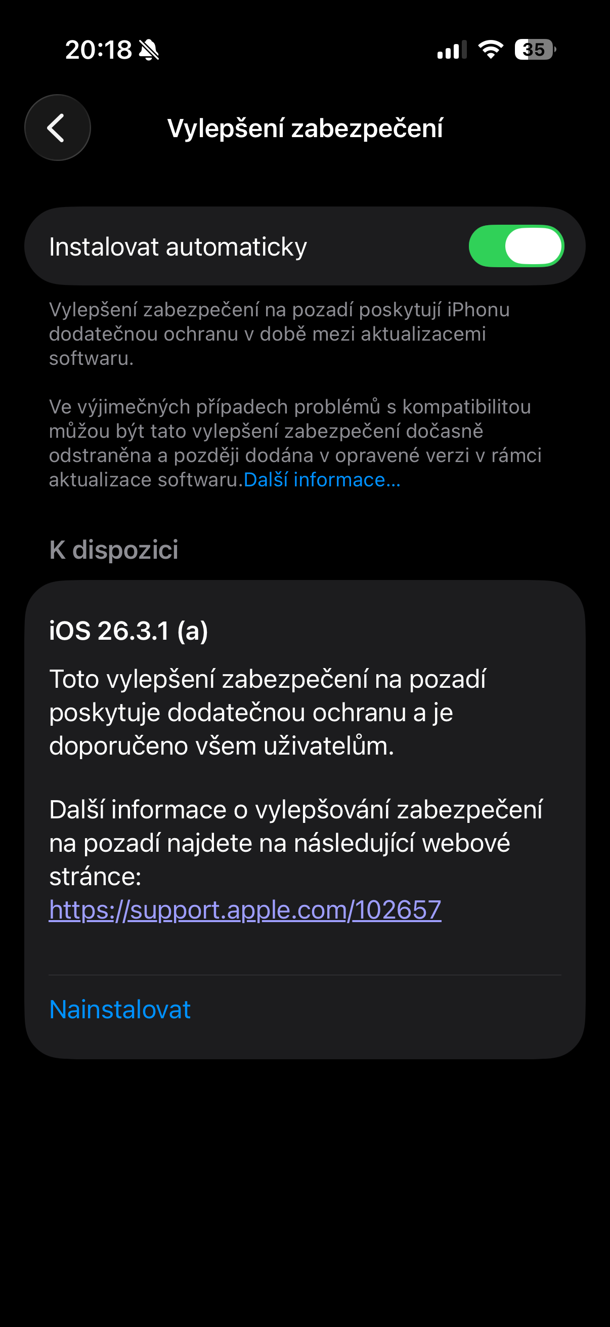 Co se týče instalace, ta se provádí v Nastavení v sekci Soukromí a zabezpečení – Vylepšování zabezpečení na pozadí, kde si můžete tyto aktualizace zapnout i automaticky. A pokud se vám do nich nechce, nic se neděje – opravy se k vám dostanou později v rámci klasického systémového updatu. Apple nicméně zároveň upozorňuje, že ve výjimečných případech mohou tyto zásahy způsobit problémy s kompatibilitou. Pokud by k tomu došlo, firma update stáhne a upraví ho v některé z dalších verzí. Ve výsledku jde ale o další krok směrem k tomu, aby iPhony, iPady a Macy byly chráněné průběžně, ne jen jednou za čas. A to je přesně ten směr, který dává v dnešní době čím dál větší smysl.