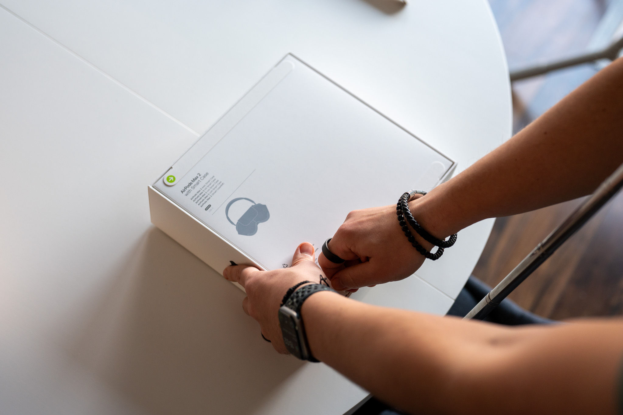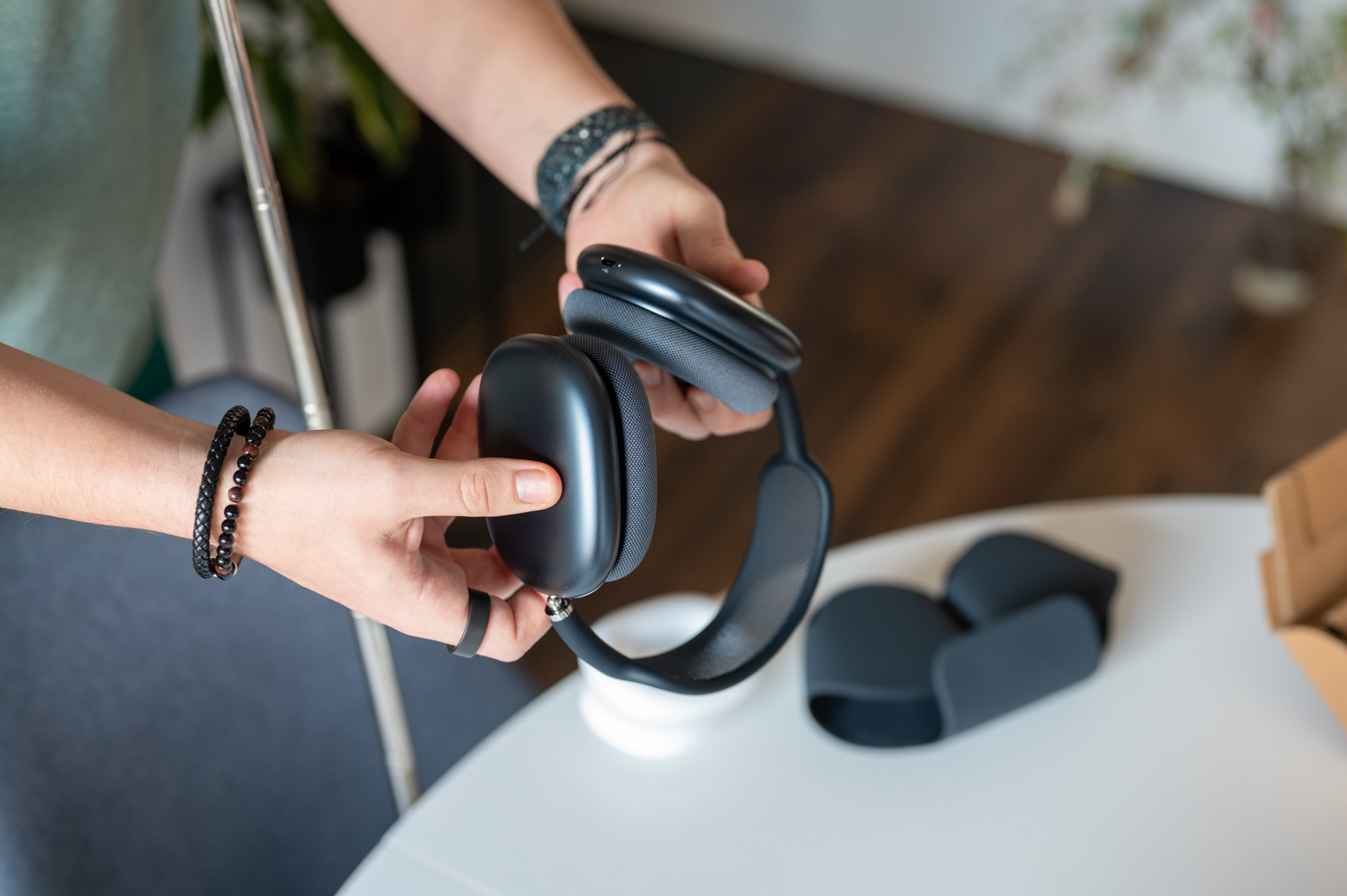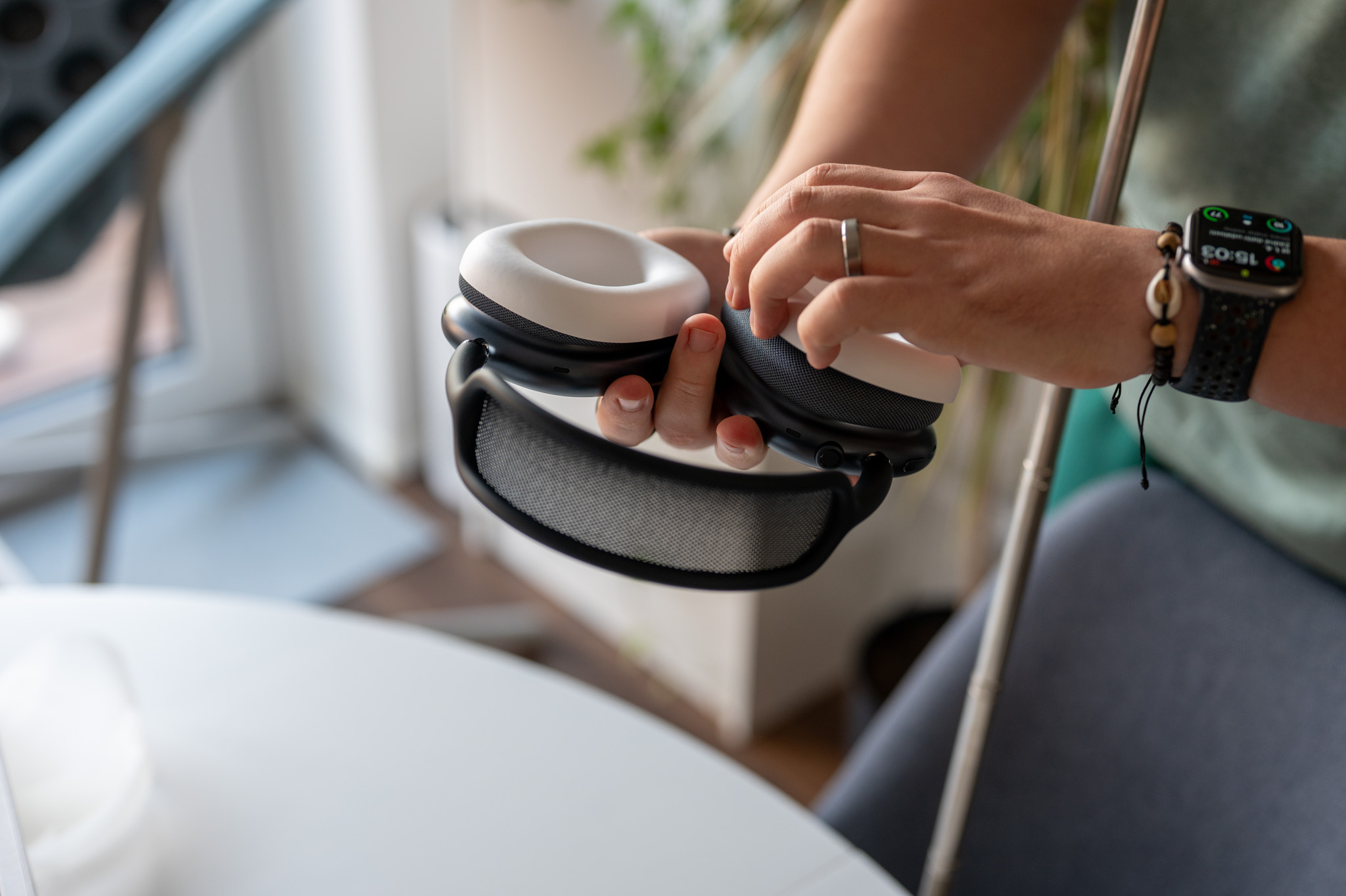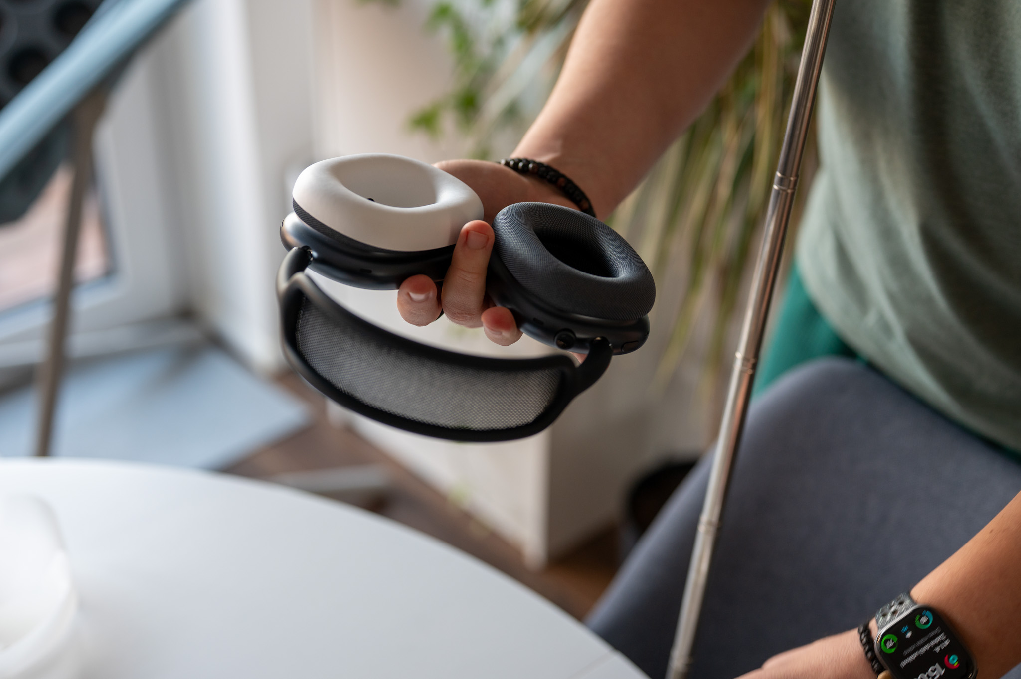 A jak tato sluchátka působí v ruce a na uších? Upřímně, v ruce opravdu skvěle. Kombinace kovových náušníků, náhlavního mostu s úpletem a měkkých mušlí je totiž na oko opravdu líbivá a pocitově opravdu prémiová. Jakmile si pak člověk tato sluchátka nasadí a pohraje si s vysouvacími rameny, aby mu na hlavě seděla co možná nejlépe, kolem uší si přijde jako v bavlnce. Bohužel, hlavní neduh předešlé generace ve formě vyšší hmotnosti zde Apple nevyřešil, takže už po chvíli na hlavě je hmotnost docela cítit. Jsem proto docela zvědavý na to, jak rychle si na vše zvyknu.