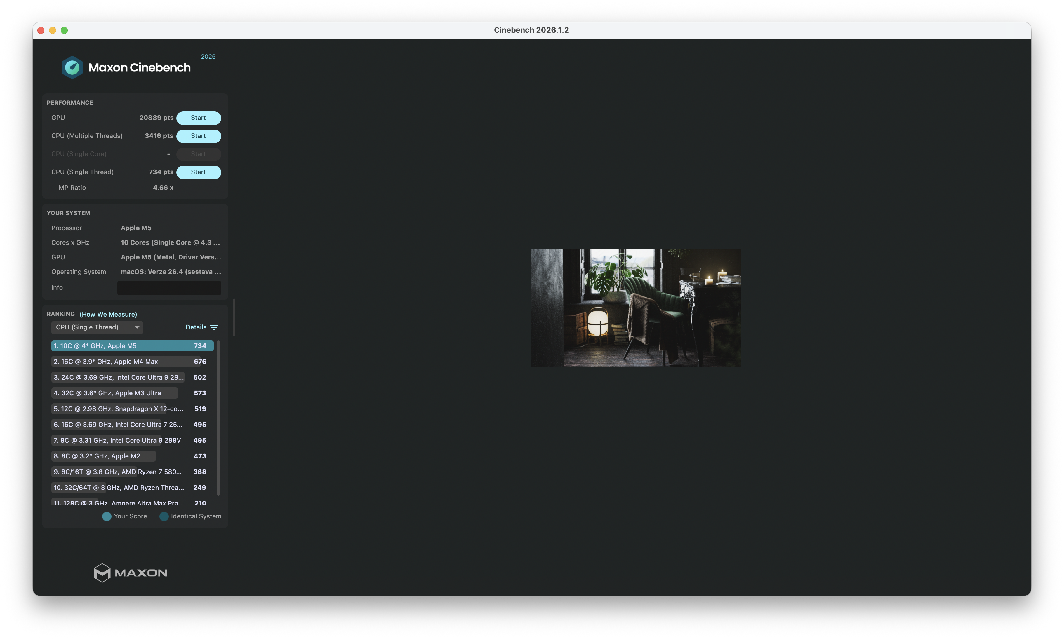To jsem si ověřil jednoduše tak, že jsem na 13“ a 15“ modelu dělal úplně stejné věci a menší ze strojů se zahřál o pár minut rychleji. Nejednalo se sice o žádný extrém, ale je zkrátka vidět, že fyziku ohýbat nelze a že větší kovová plocha dokáže teplo rozvádět lépe než malá. Jedním dechem zde ale musím dodat, že například při Cinebench testu se sice začal 15“ Air M5 zahřívat mírně později než 13“ model, na konci testu byl však víceméně stejně teplý, takže pasivní chlazení zde logicky naráží na své limity. Až úsměvně proto vedle těchto strojů působil M5 MacBook Pro, který sice při benchmarku zapnul větrák a tedy byl slyšet, nicméně na konci testu byl takřka studený.