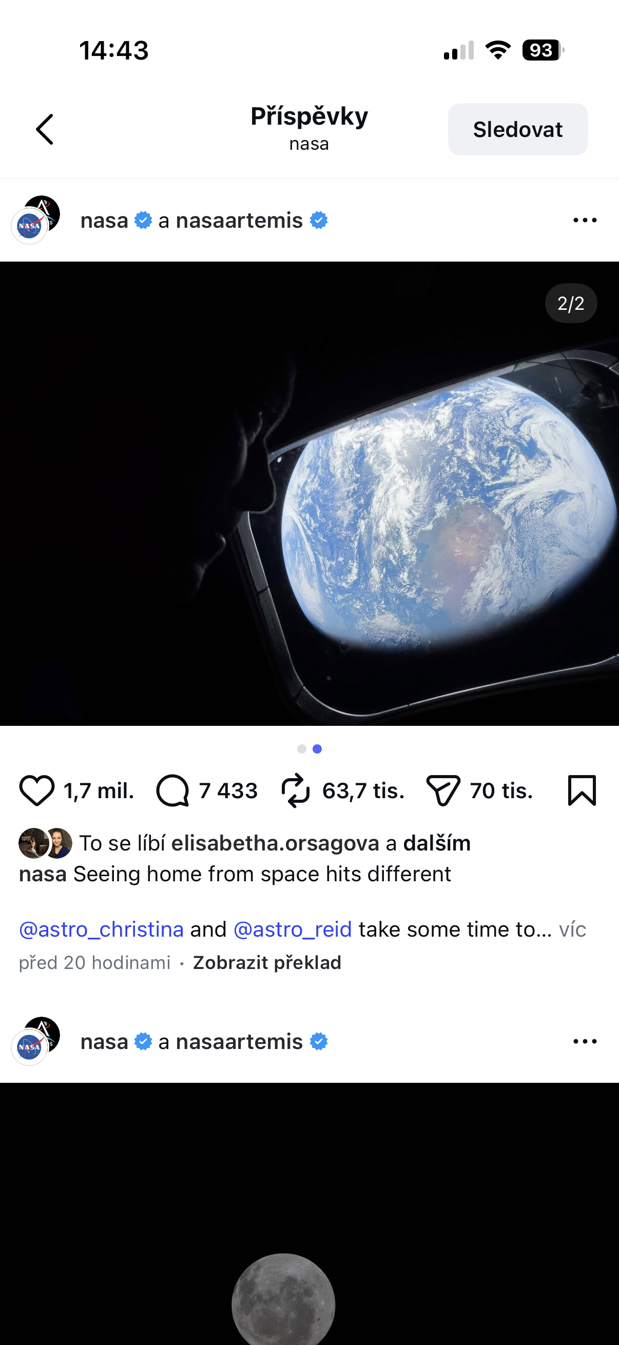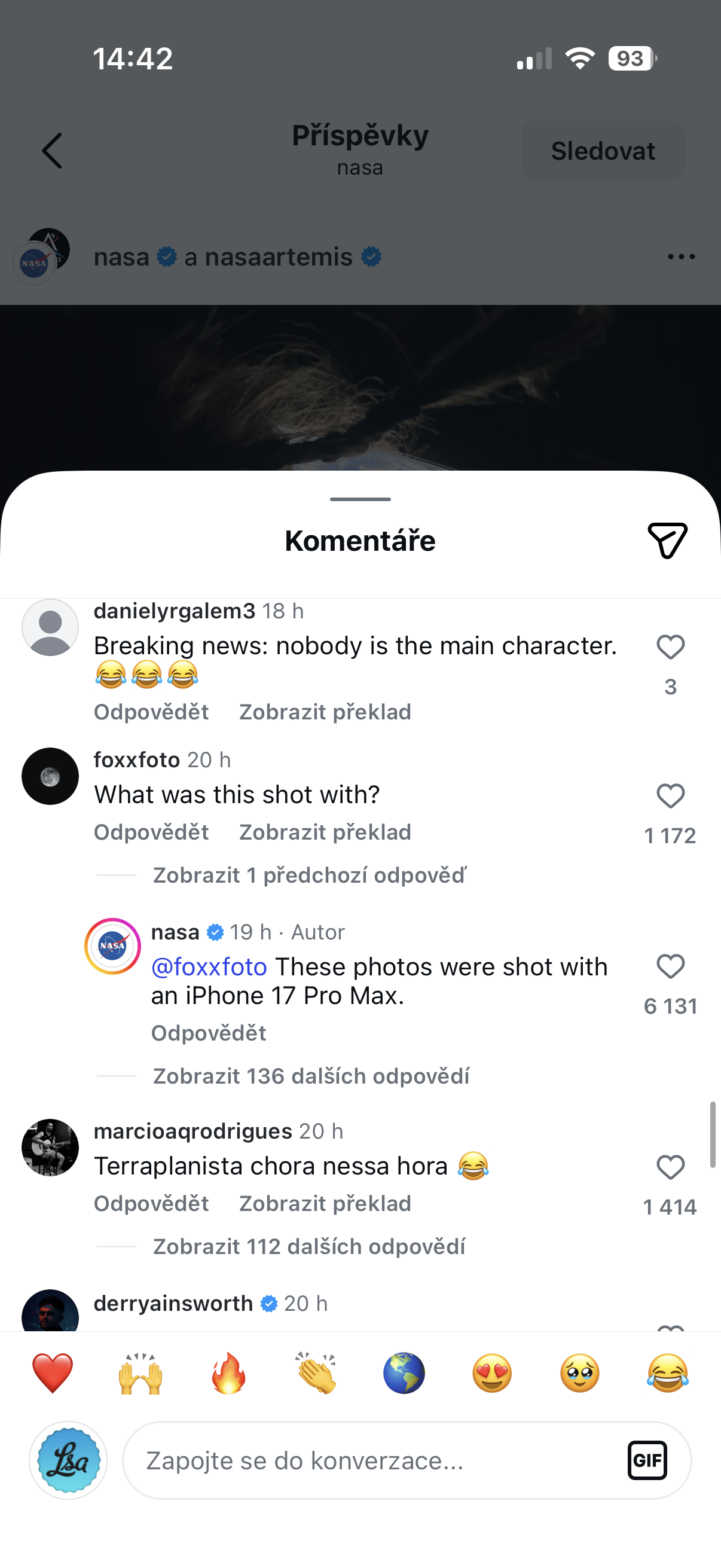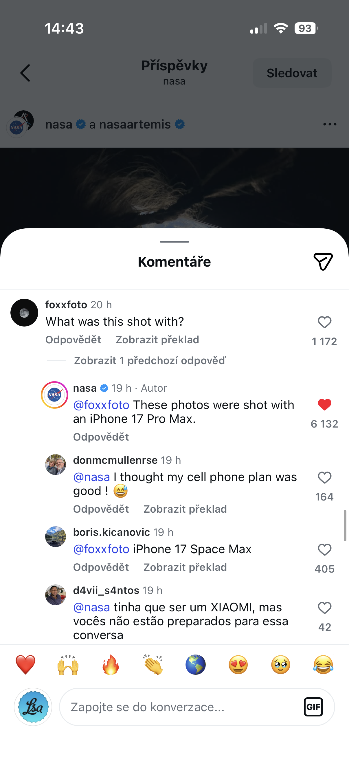 Když NASA sdílela fotografie, které nyní pořídili astronauti mise Artemis 2, nikdo netušil, na jaký přístroj byly pořízeny. Jeden z uživatelů se proto pod snímky na oficiálním profilu NASA zeptal, jakým zařízením byly fotografie pořízeny. NASA odpověděla, že veškeré snímky vznikly na iPhone 17 Pro Max. Pokud si tedy říkáte, zda je pro vás iPhone 17 Pro Max dostatečně dobrý, věřte, že je minimálně dostatečně dobrý pro astronauty, kteří s ním vyletěli k Měsíci, jenž v nejbližších dnech opakovaně obletí, a poté se telefon i s posádkou vrátí zpět na naši planetu.
