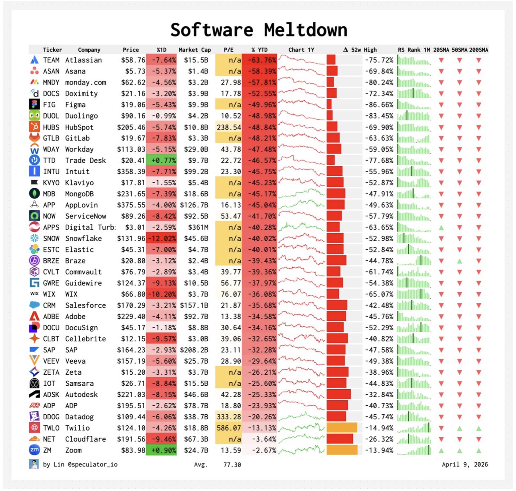 Důvod současného výprodeje je poměrně jednoduchý. Investoři se obávají, že díky AI nástrojům bude mnohem snazší vytvářet vlastní aplikace, automatizace a interní systémy bez toho, aby firmy musely platit za tradiční software od zavedených dodavatelů. Jinými slovy, trh se bojí, že část produktů, za které dnes firmy platí společnostem jako Salesforce, Adobe nebo ServiceNow, si budou zákazníci schopni vytvořit sami, levněji a rychleji. Právě tento strach se letos propsal do celé řady titulů, a například ServiceNow podle Barron’s v roce 2026 ztratil téměř polovinu hodnoty, mimo jiné kvůli obavám, že AI omezí poptávku po části jeho produktů a sníží potřebu některých softwarových pracovních míst.