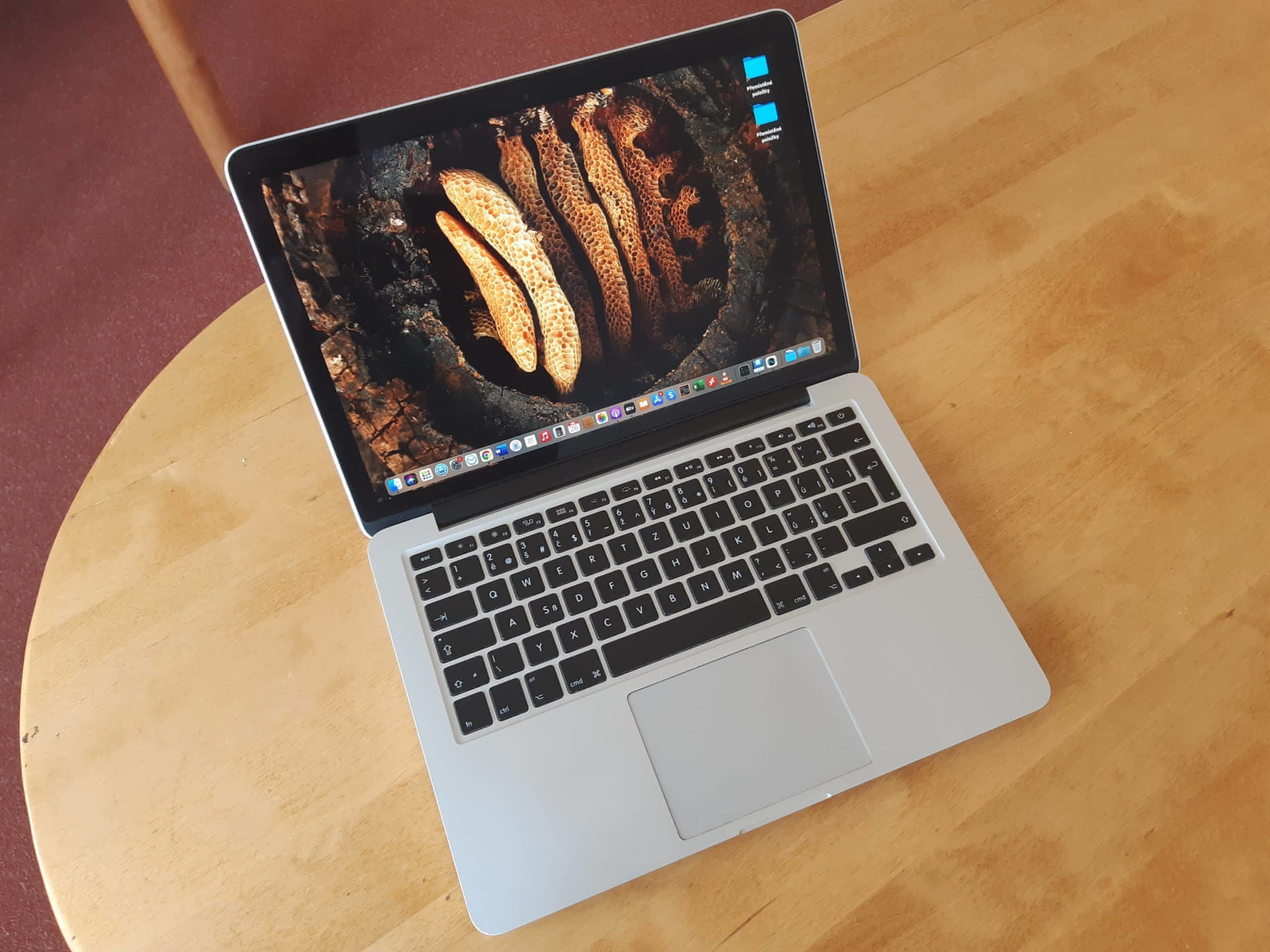 Prodám Macbook PRO Retina, 2,4GHz i5, 8GB 1600Mhz DDR3, SSD 256GB + SD karta Transcend Apple JetDrive 256GB. Nejnovější macOS Big Sur, baterie 476 cyklů (výměna 2018) , celkově zachovalý stav, oděrky pouze zespoda od prachu pod krytem. Originální nabíječka s opraveným kabelem. Česká distribuce, zakoupeno v iWant 2/2014. Osobní odběr Pardubice a okolí nebo poštou za 160 Kč.