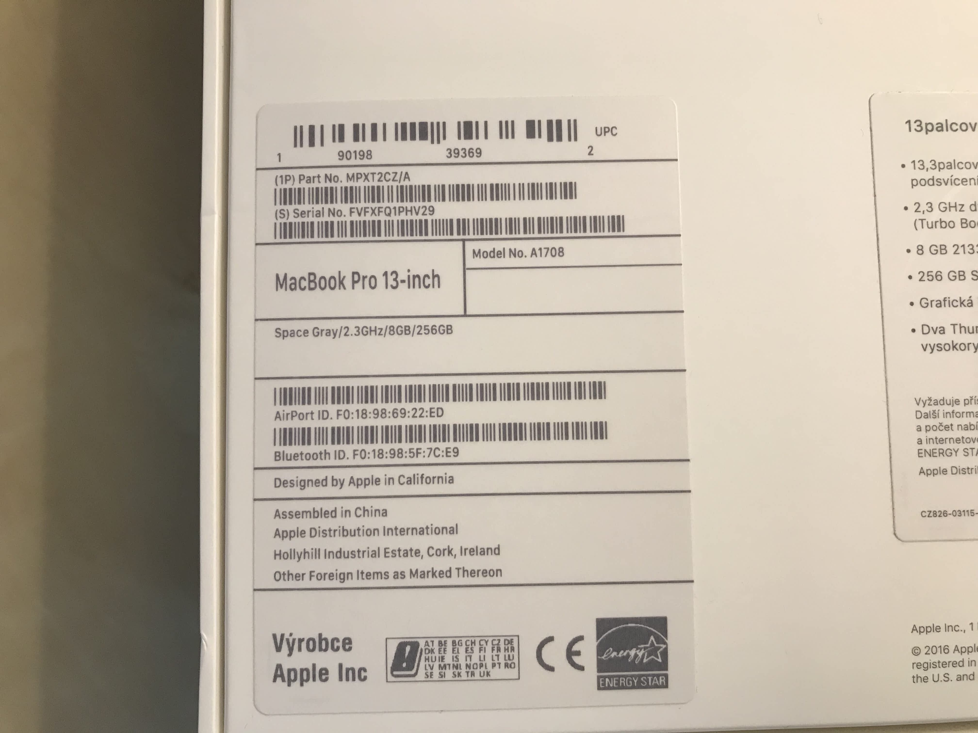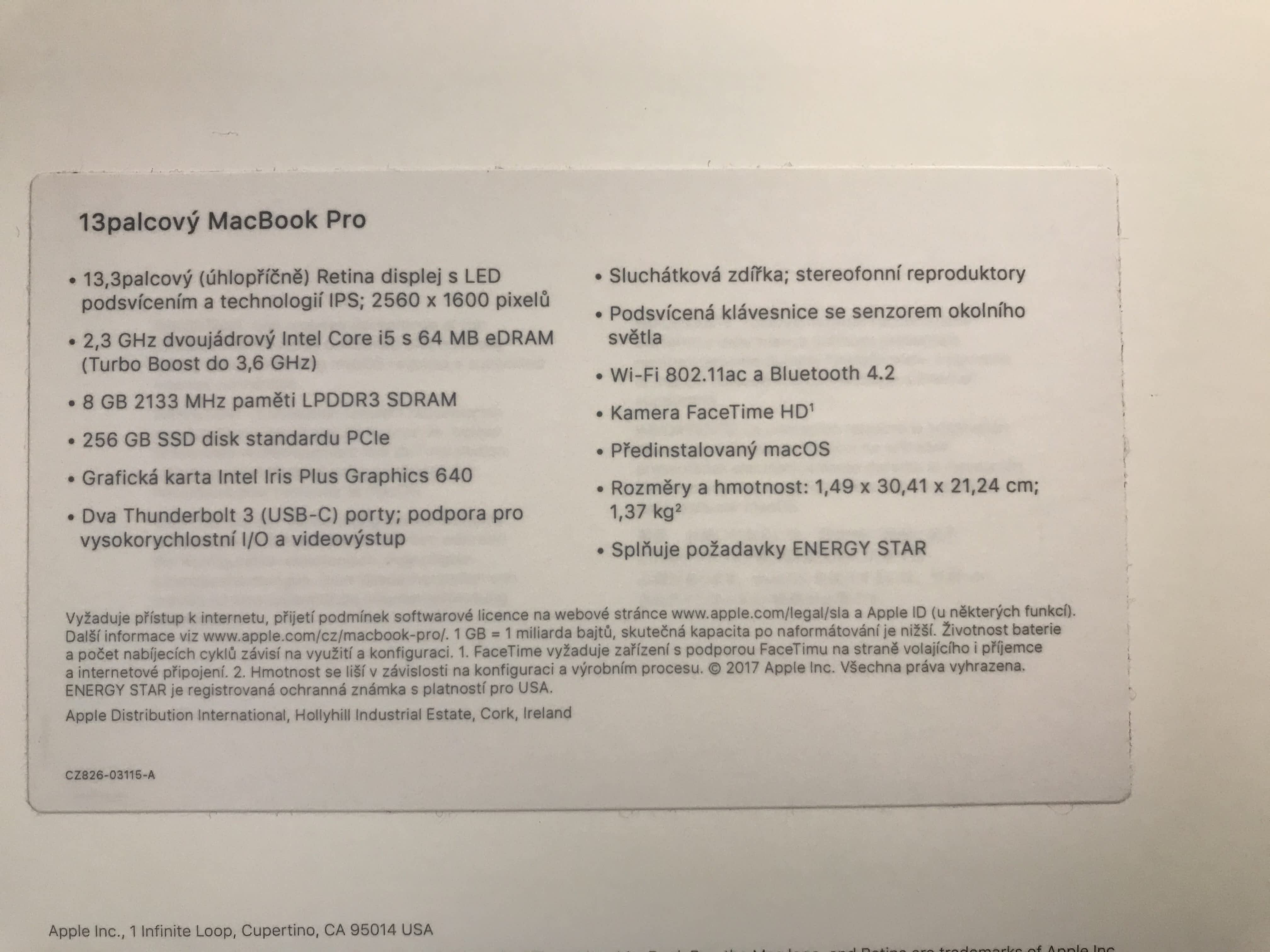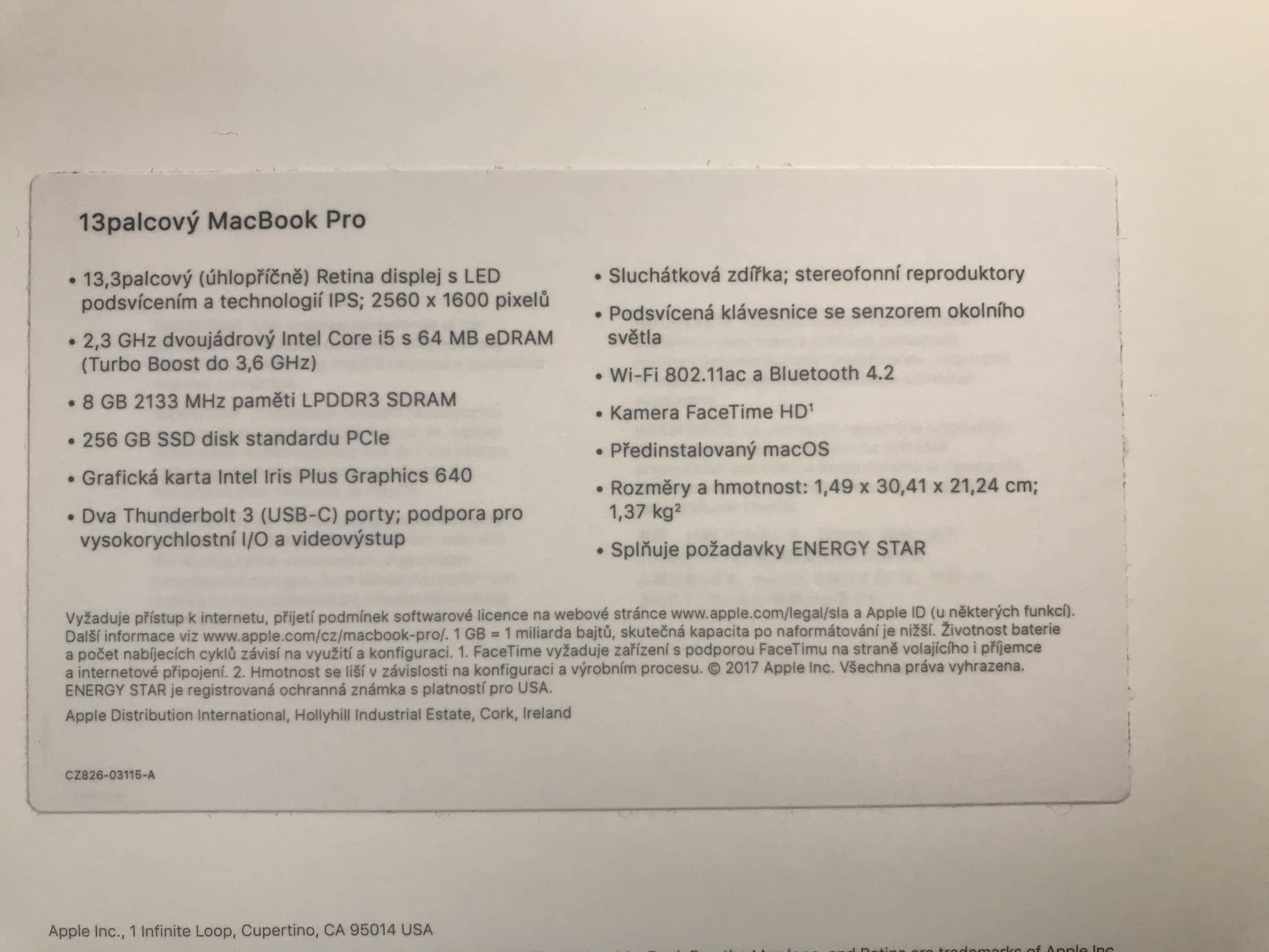 Procesor: 2,3 GHz Intel Core i5, Disk: 256 SSD