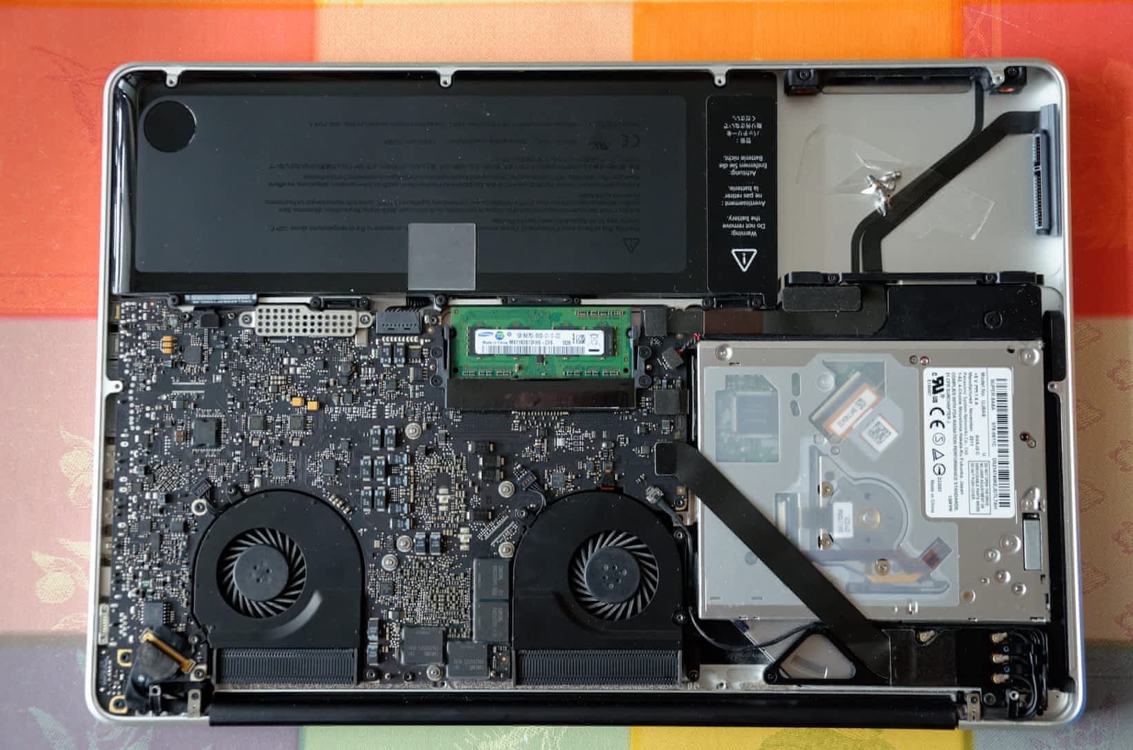 Nabízím na náhradní díly 15" MacbookPro Late 2011 s mrtvou základní deskou, již jednou měněnou (i7 2,4 GHz). Baterie OK, pod 100 cyklů, DVD mechanika funguje bez chyb. Bez HDD a RAM (jsou tam 2 x 1 GB moduly). Matný display 1680×1050, bez vad. Včetně zdroje.