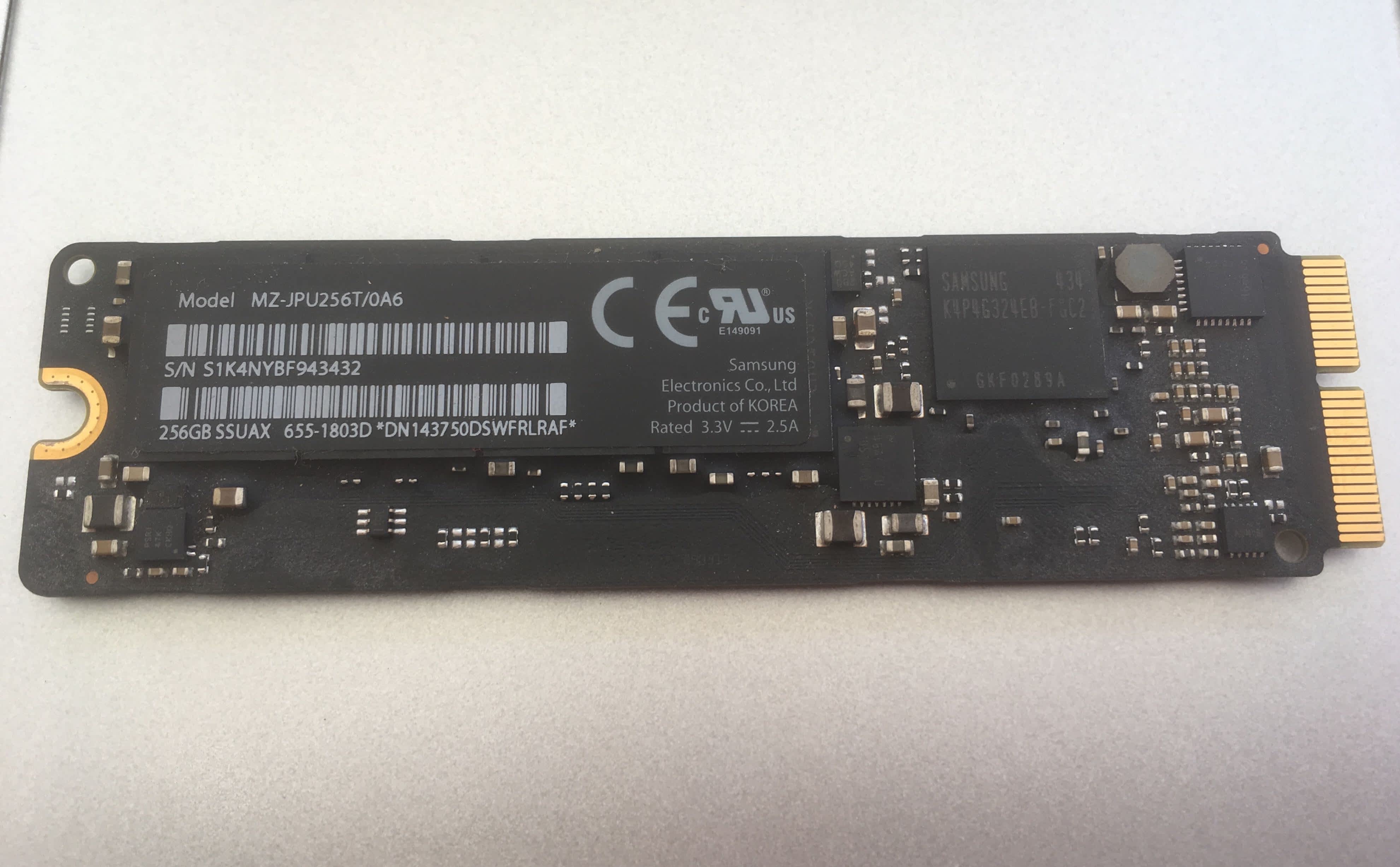 Originální SSD (SSUAX) pro Macbook PRO retina 2013-2015 (MacBookPro11,1 – MacBookPro12,1), nebo Macbook Air 2013-2017 (MacBookAir6,1 – MacBookAir7,1).