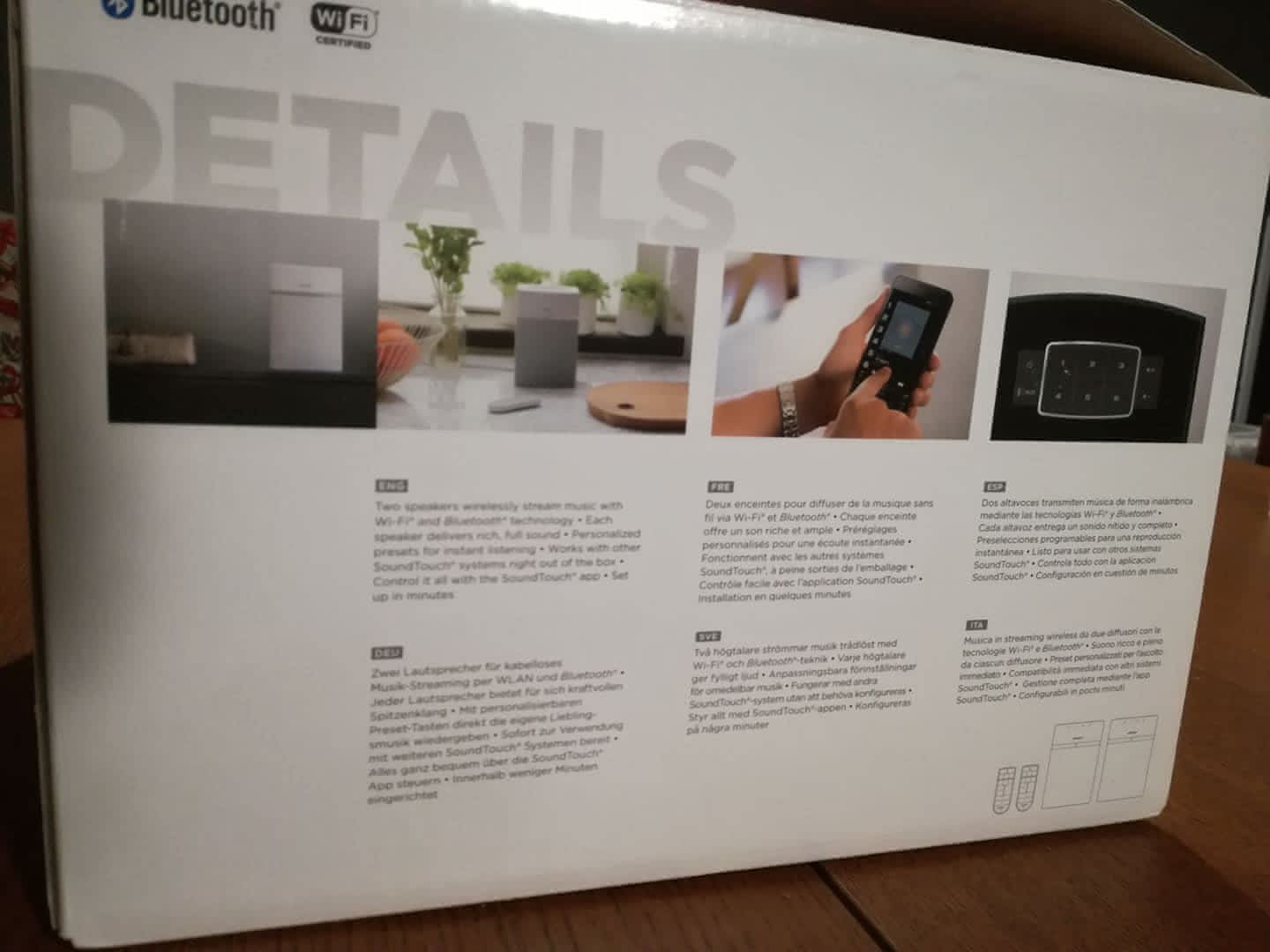 bezdrátový reproduktor • Wi-Fi (WLAN): 802,11b/g/n • Bluetooth • AUX vstup • USB • podporované formáty: MP3, WMA, AAC, Apple Lossless • napájecí kabel • USB kabel • dálkové ovládání • 6 personalizovaných předvoleb • rozměry: 21,20 × 14,10 × 8,70 cm • hmotnost: 1,30 kg • v balení: napájecí kabel, nabíjecí USB kabel, dálkový ovladač