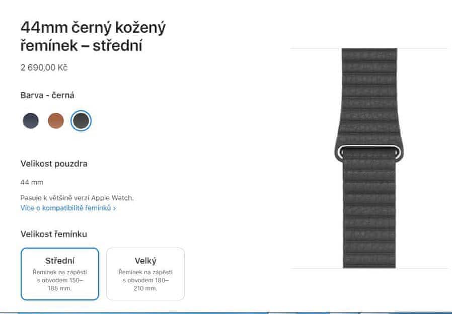 Nový kožený řemínek pro Apple Watch 6 a SE černý – velký (L) , na zápěstí s obvodem 180-210 mm. Nevhodný dárek.