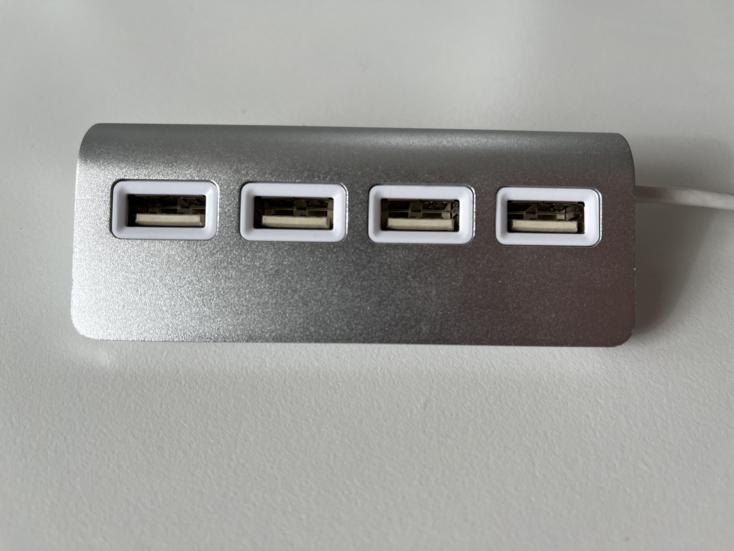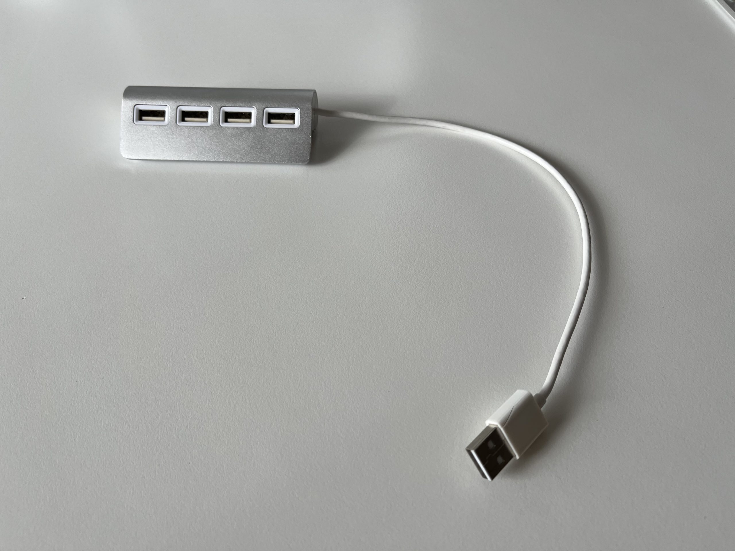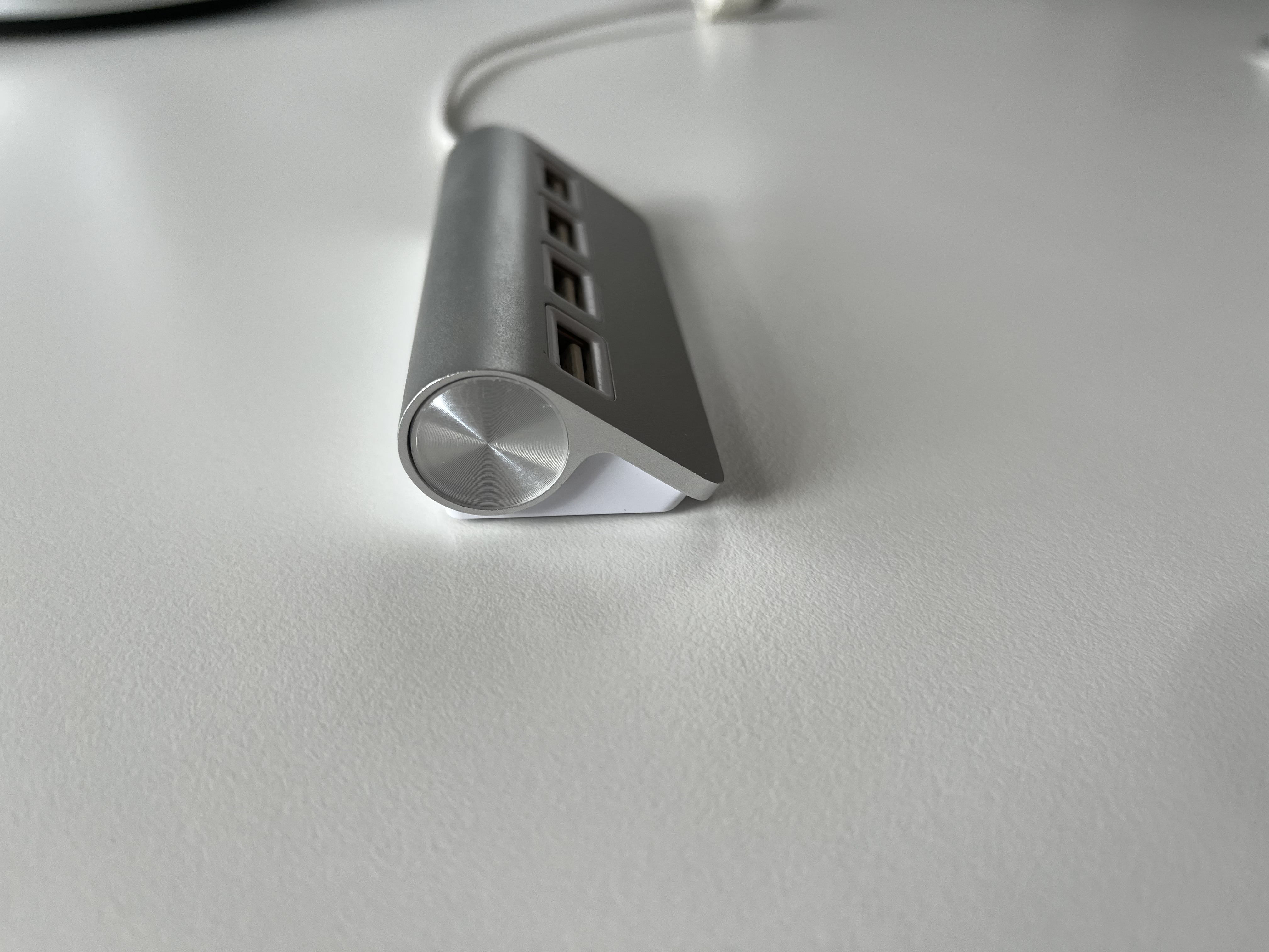 Prodám tento 4portový USB hub (samozřejmě neoriginální). Designově i barevně se hodí k první generaci Apple Keyboard nebo Magic Trackpad. Používal jsem k iMacu, abych měl USB porty lépe přístupné zepředu. Kabel má délku 25 cm. Na spodu je pořád neodlepená původní nálepka, kterou můžete hub upevnit ke stolu. Osobní předání v Brně nebo Zásilkovna (+70 Kč).