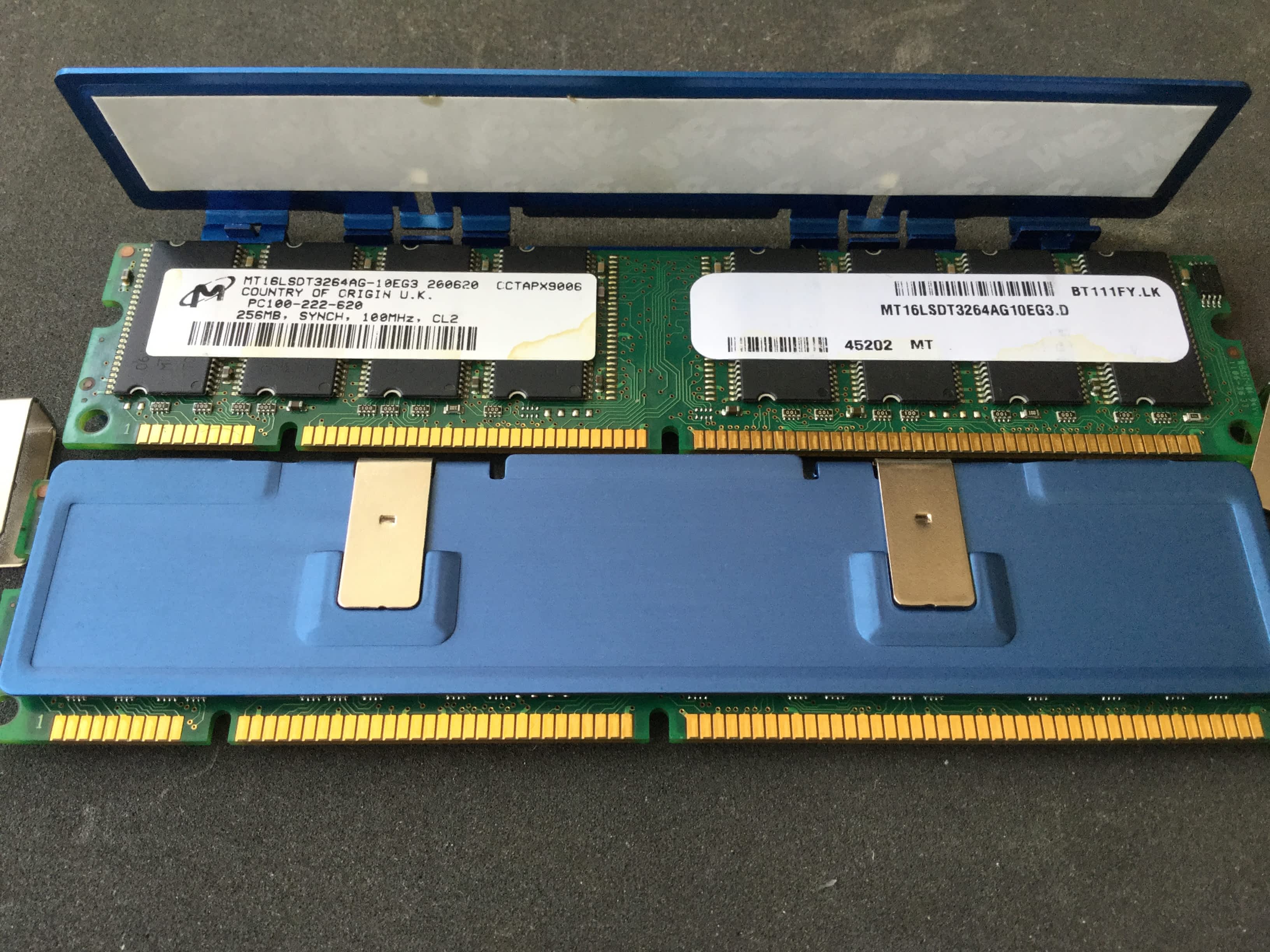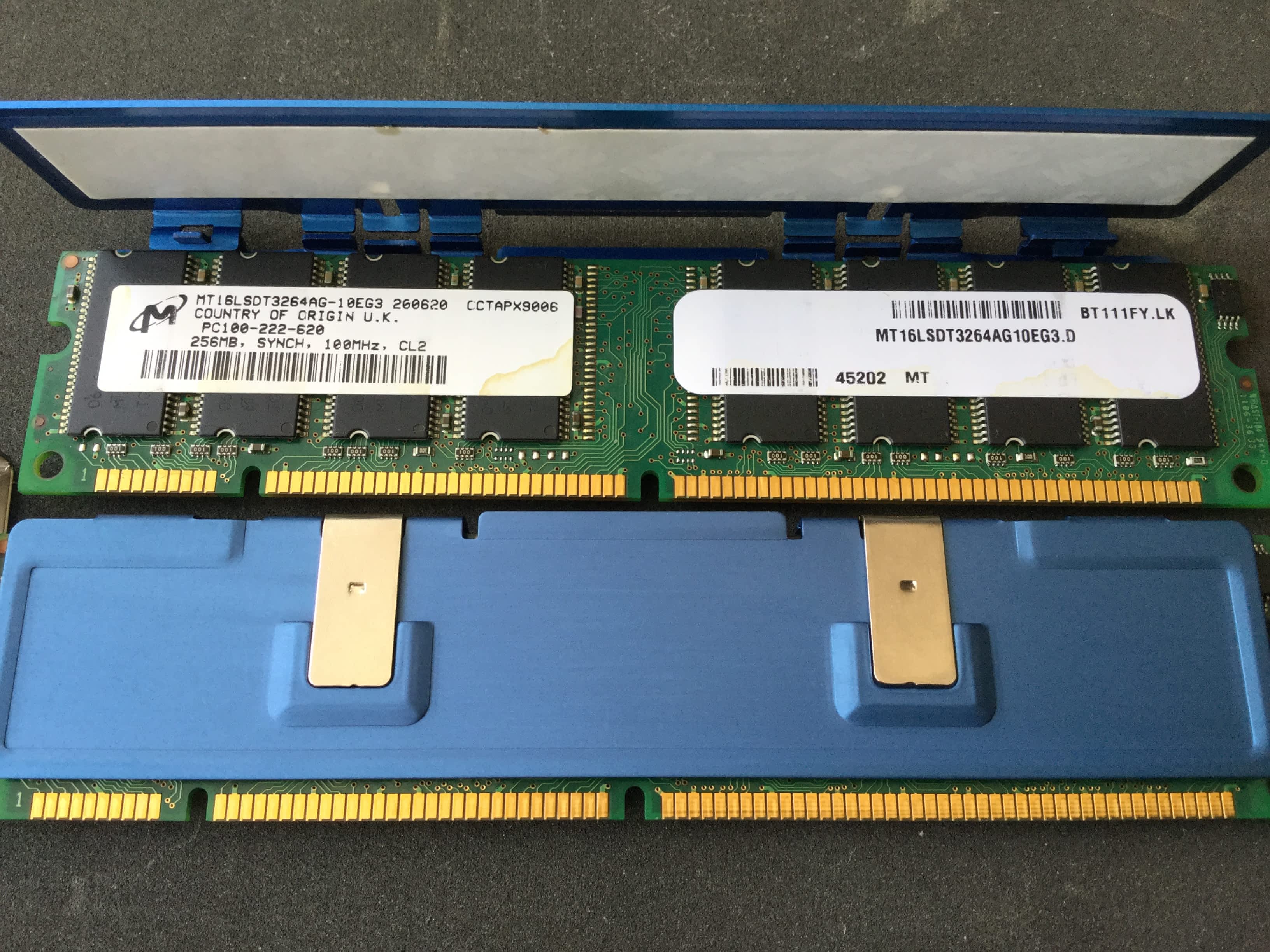 Prodám čtveřici pamětí RAM 256MB/PC100, CL2, včetně kvalitních chladičů pamětí, čtveřice má shodné parametry, daji se tedy párovat i mezi sebou, vhodné do Power Macintoshů G3/ G4/ iMac, apod. Moduly jsou nepoužívané, jsou naprosto nové, kdysi jsem je pořídil do Power Macintosh G4, který jsem později prodal zvlášť bez těchto pamětí.