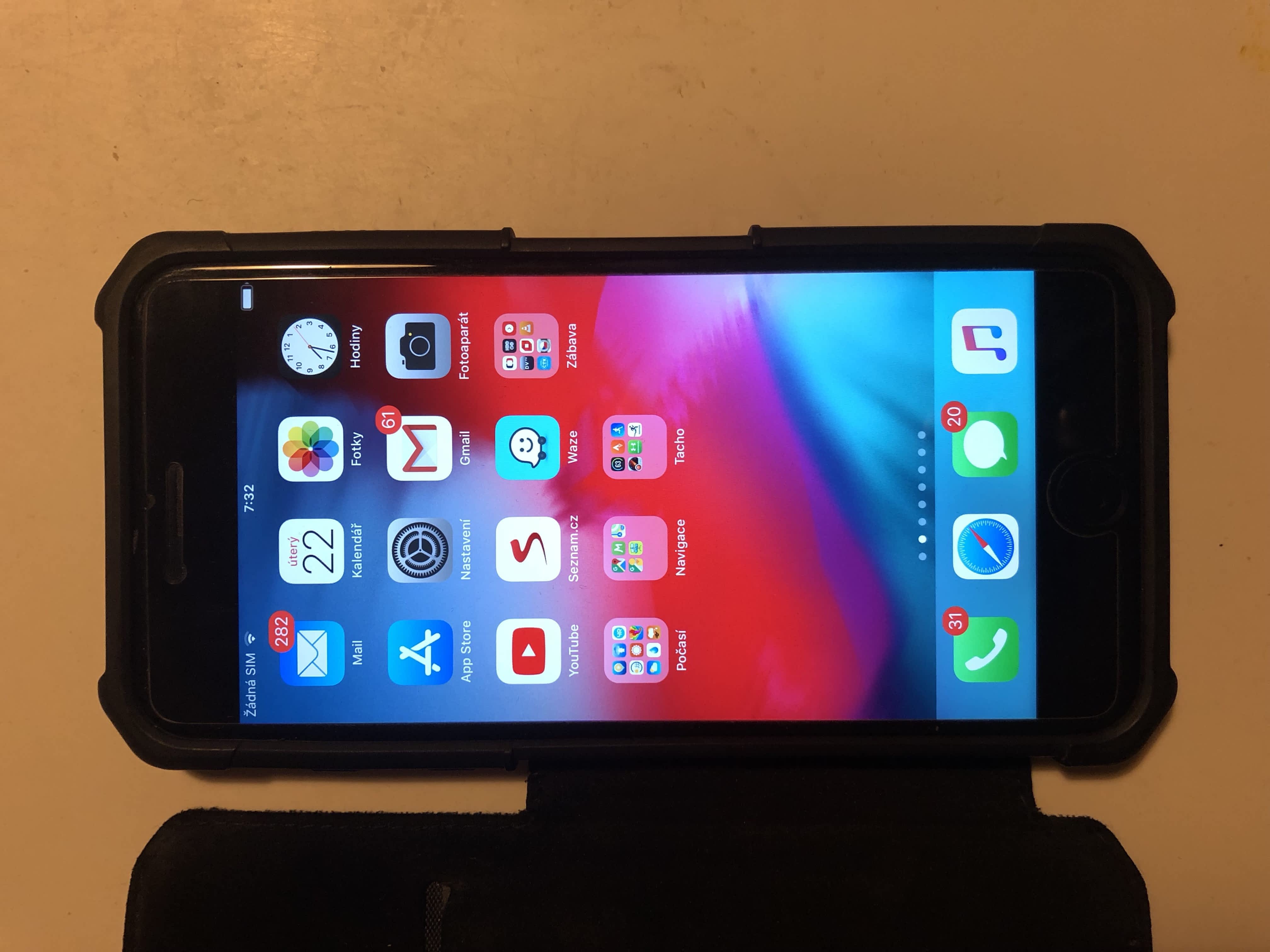 Na displeji je sklo, k telefonu je flipové pouzdro UAG, to už je trochu víc jetý, nabíječka. Na zádech je nalepená placička na magnetický držák do auta.