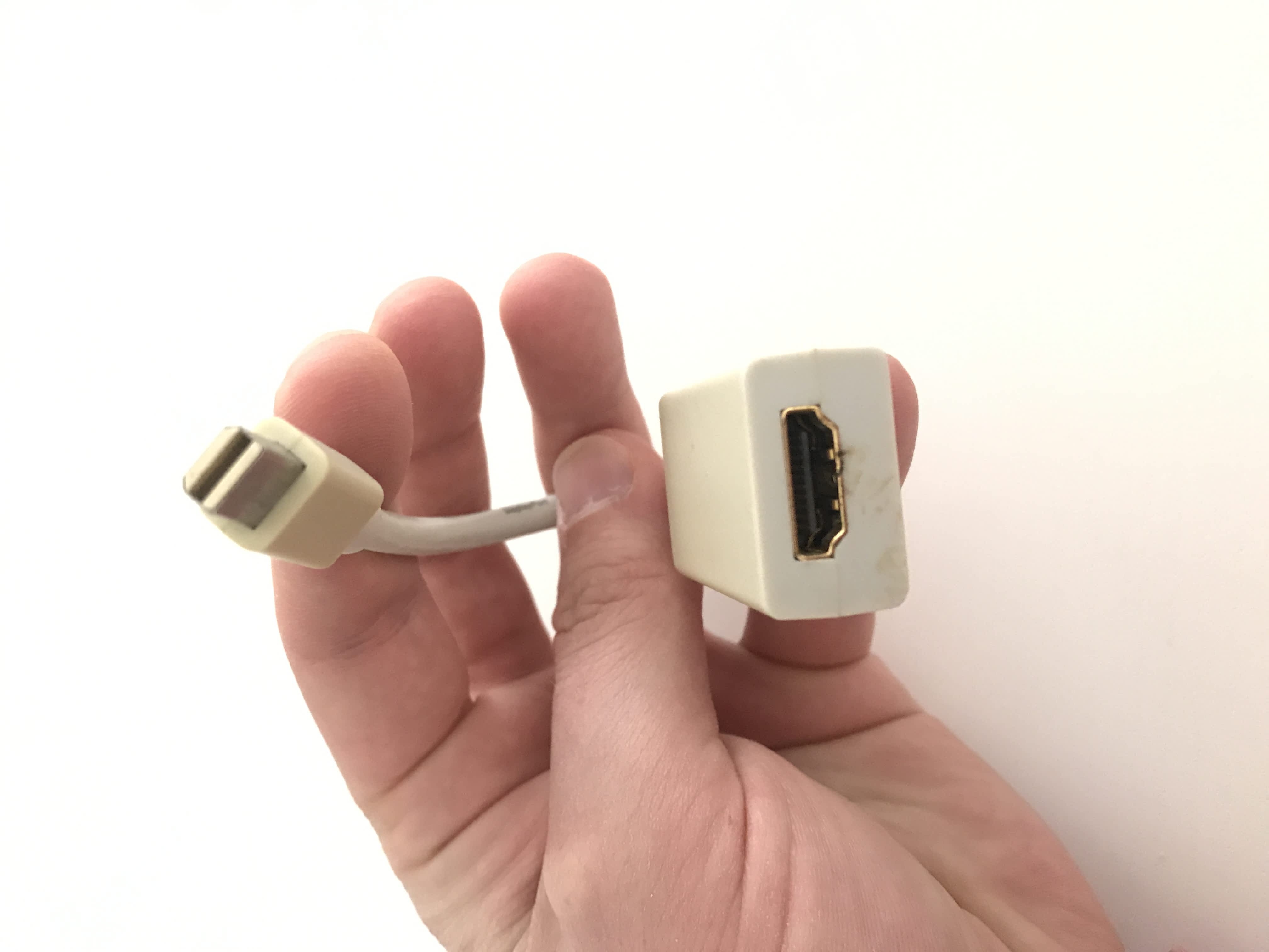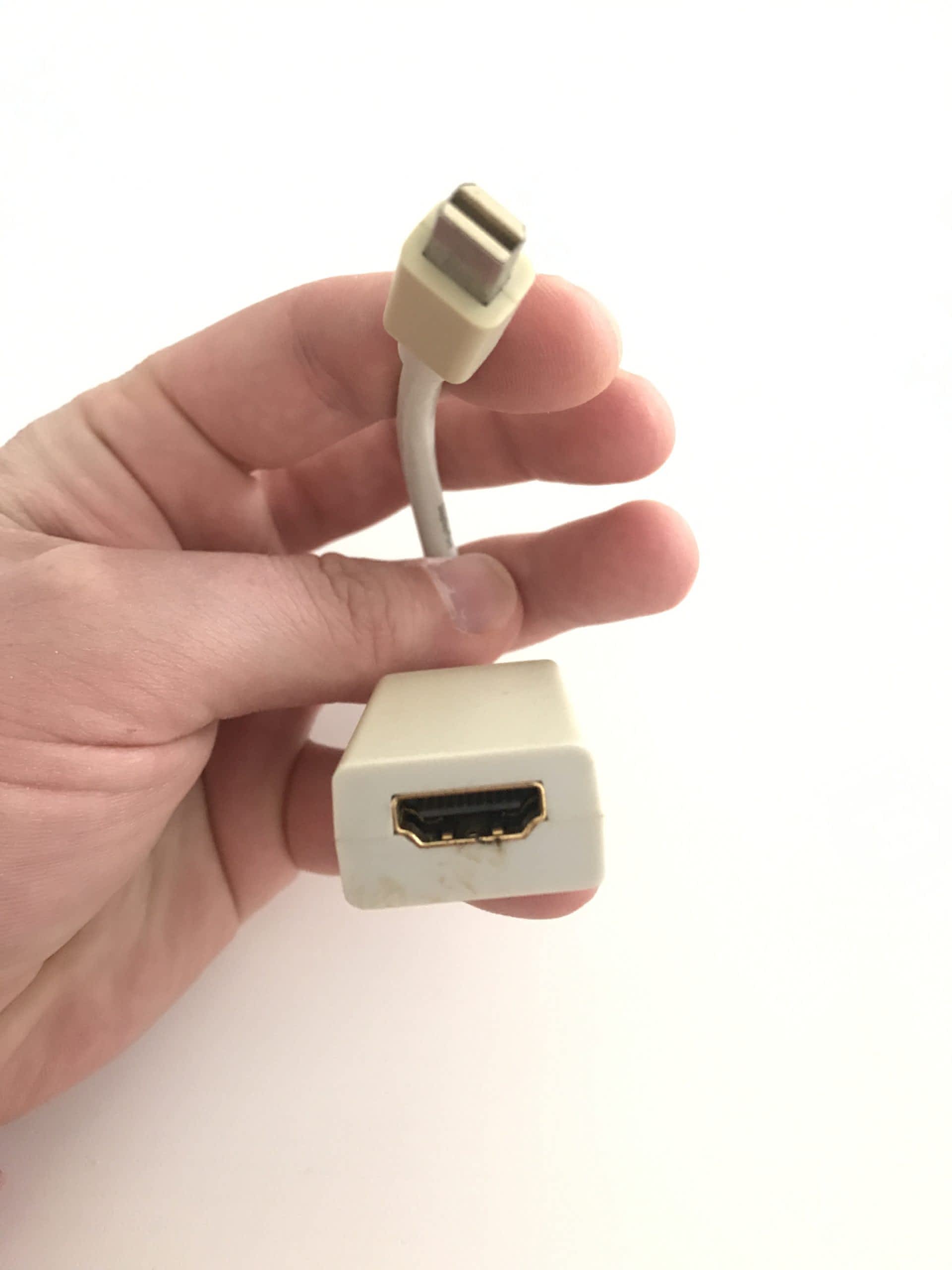 2) propojovací adaptér mini Display port / HDMI. Délka cca 20 cm. Je to asi 7 let starý adaptér, který nejspíš podporuje 1080p, nikoliv 4K. Cena 350 Kč.