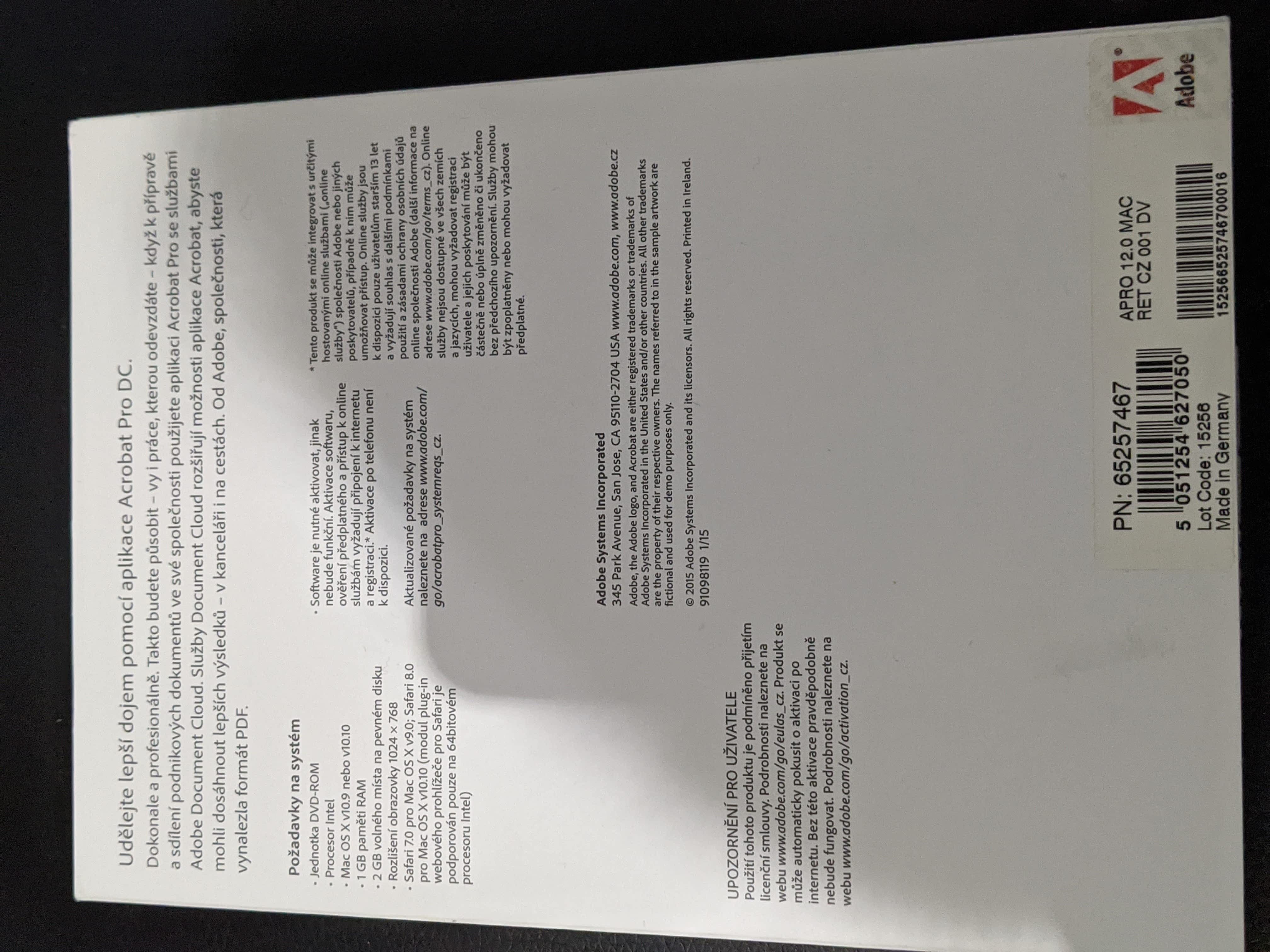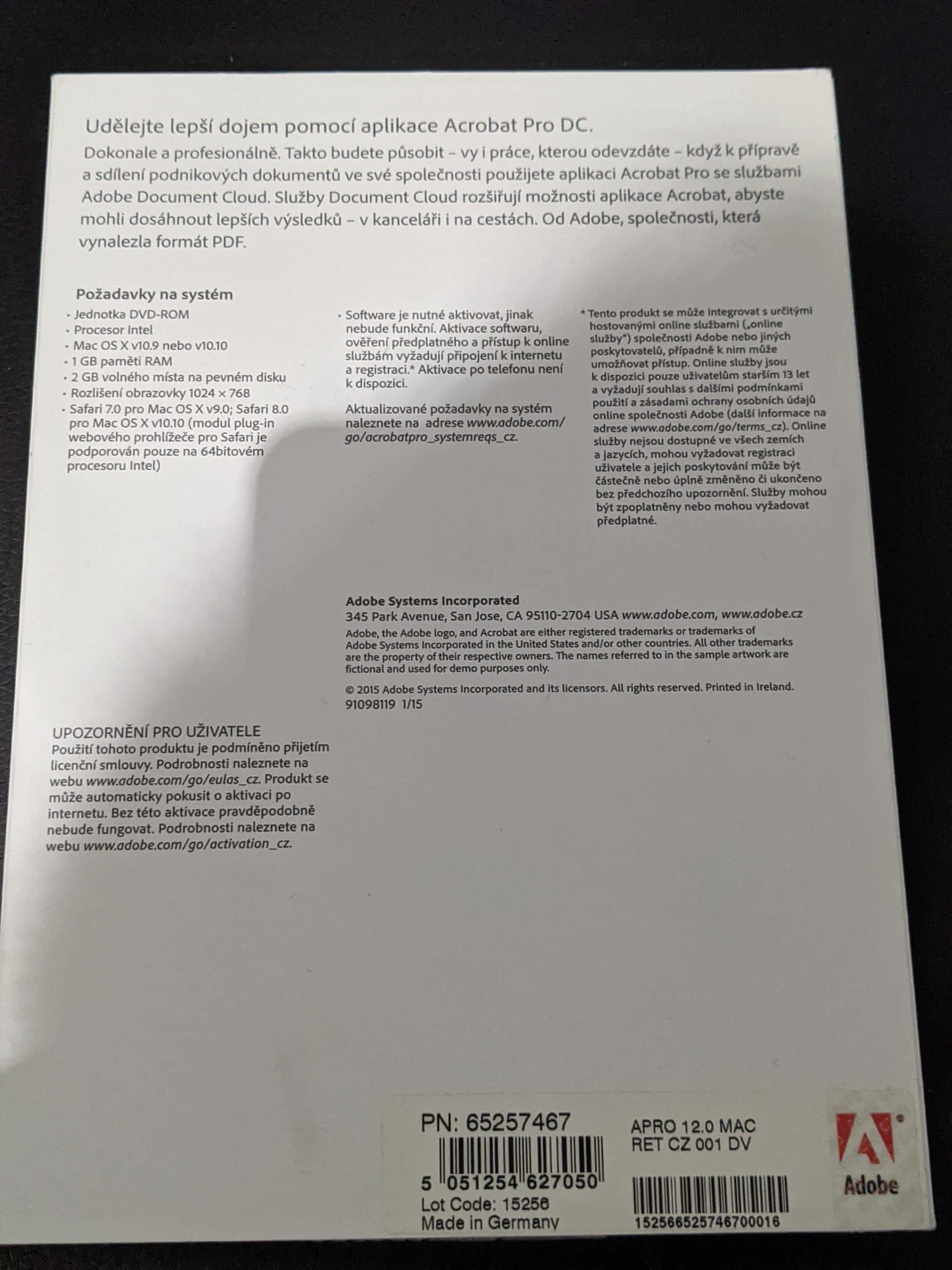 Prodám Adobe Acrobat DC 2015, kompatibilita macOS Mojave. Cena 2000.-