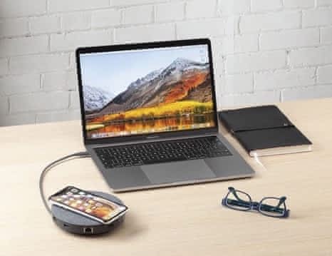 Prodám zcela nový (nevhodný dárek) USB-C hub pro MacBook/iPad, 10 portů (USB-C, 3xUSB 3.0, HDMI 4K, VGA, Ethernet, čtečka SD/miniSD, audio jack) plus wireless Qi nabíječka.