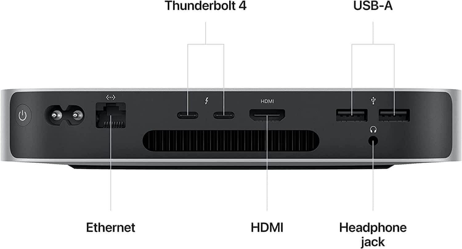 PŘIPOJTE, CO CHCETE — Mac mini s čipem M2 má dva porty Thunderbolt 4, dva porty USB-A, port HDMI, Wi-Fi 6E, Bluetooth 5.3, Gigabit Ethernet a konektor pro sluchátka. A pokud chcete vyšší rychlosti sítě, můžete nakonfigurovat Mac mini s 10Gb Ethernetem pro až 10násobnou propustnost.