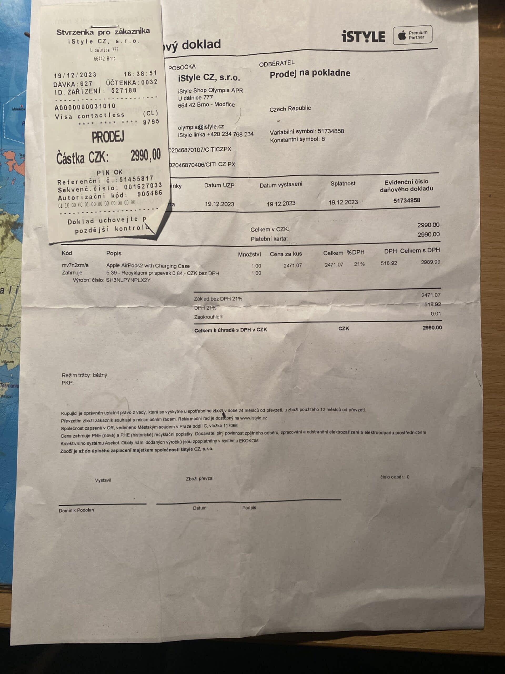 Prodám AirPods druhé generace včetně krabičky. Sluchátka jsou uplne nová jen rozbalené, nikdy nebyly použity. Sluchátka byla zakoupena 19. prosince 2023, záruka je platná dva roky, tzn. do 19 prosince 2025. Cena je 2500Kč včetně poštovného, při rychlém jednání možná sleva