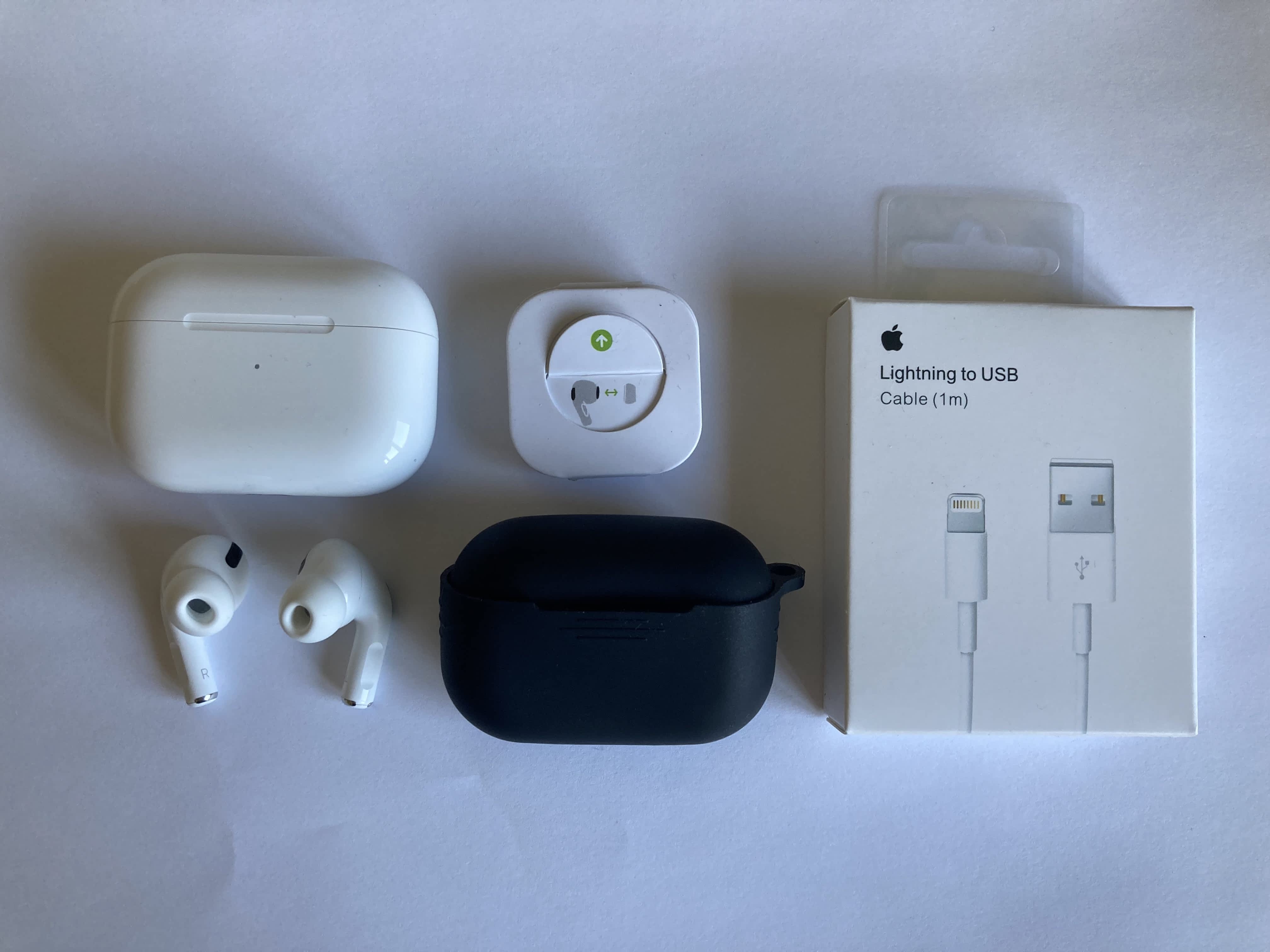-Balení obsahuje: Airpods, obal, nový kabel, špunty na airpods