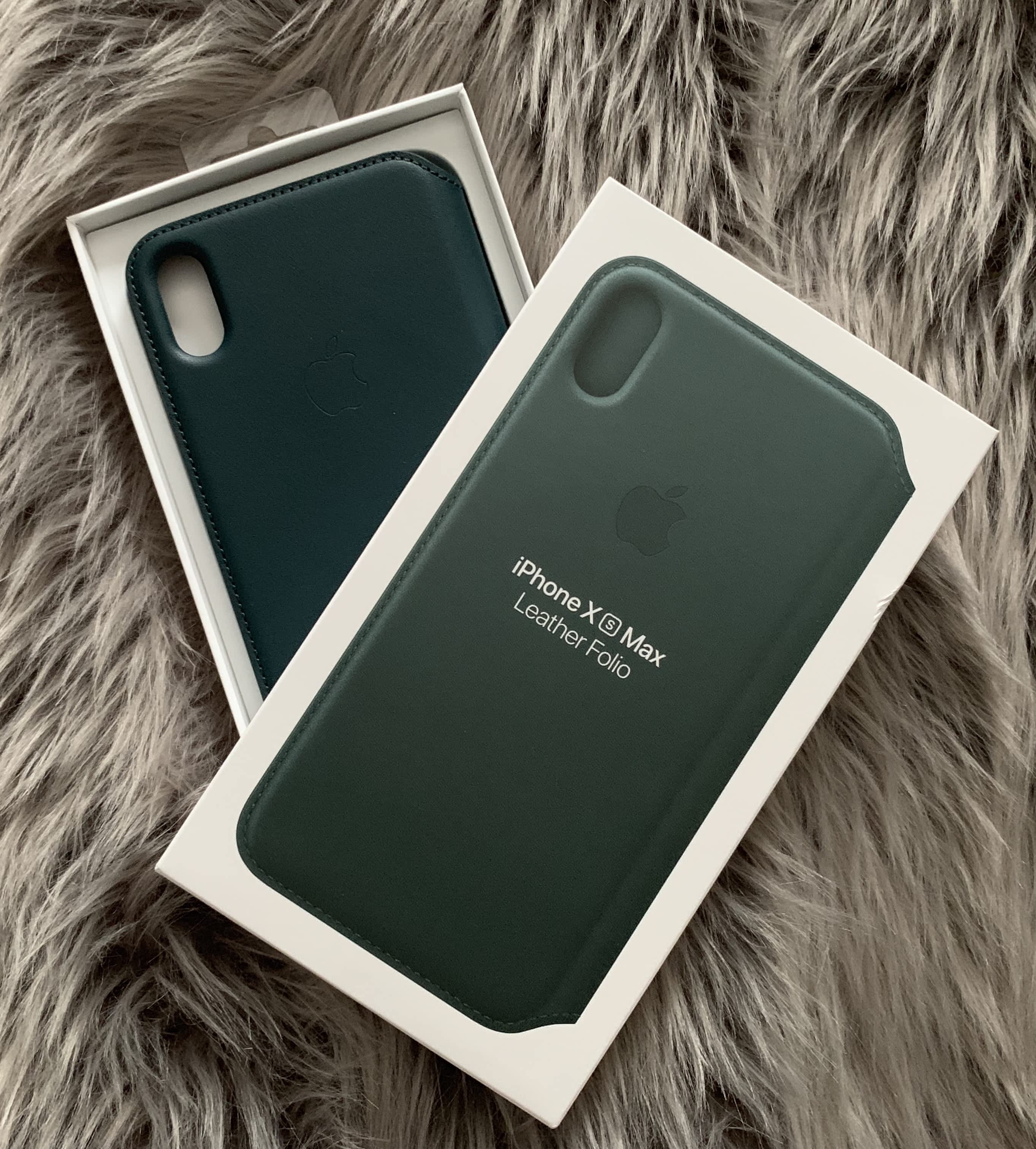 Apple Folio Case iPhone XS Max kožené original pouzdro úplně nové nepoužívané, s fakturou, Piniově zelená barva