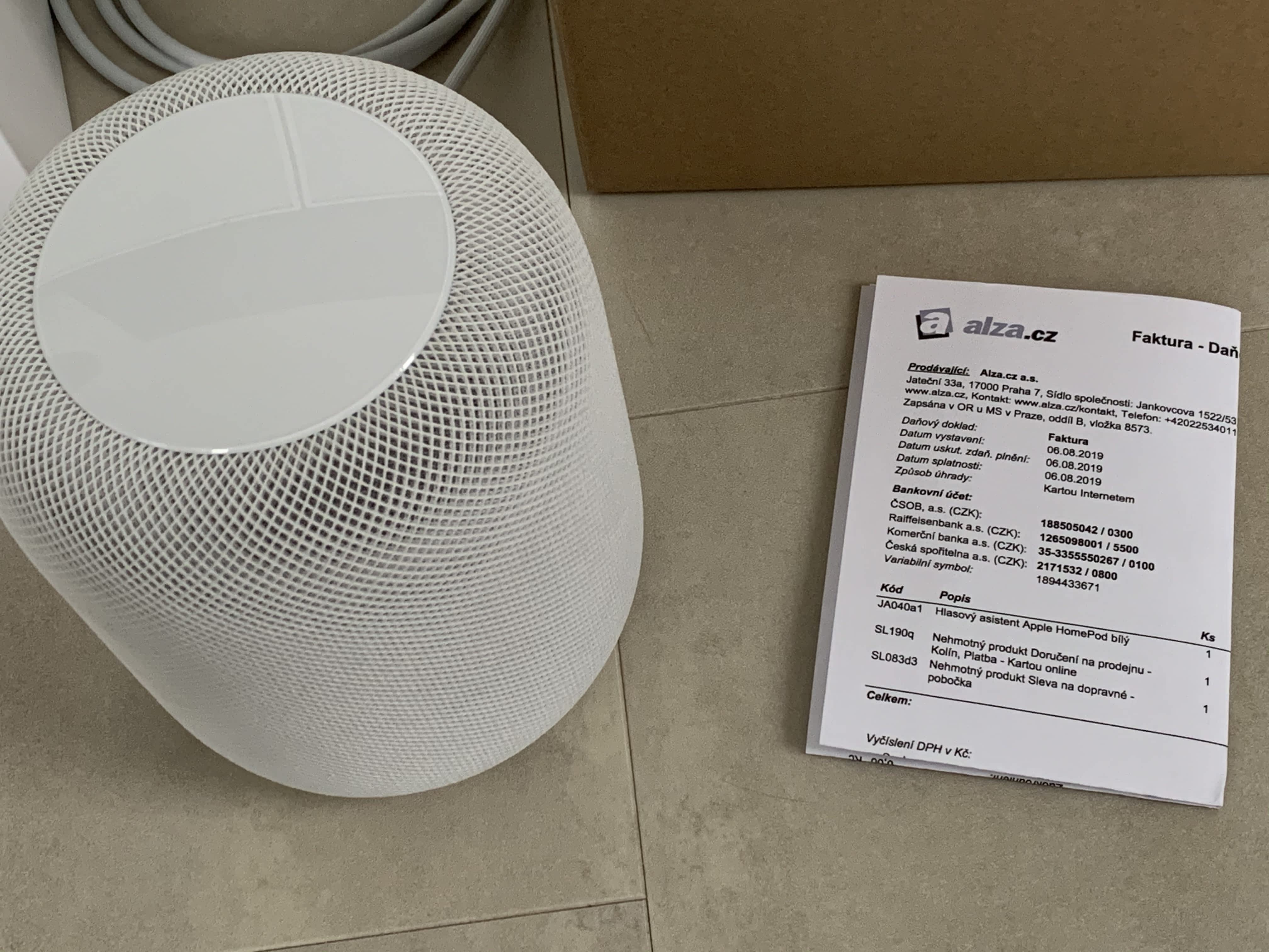Prodám apple homepod. Komletní balení, 100% stav, záruka na Alza do 8/2021.