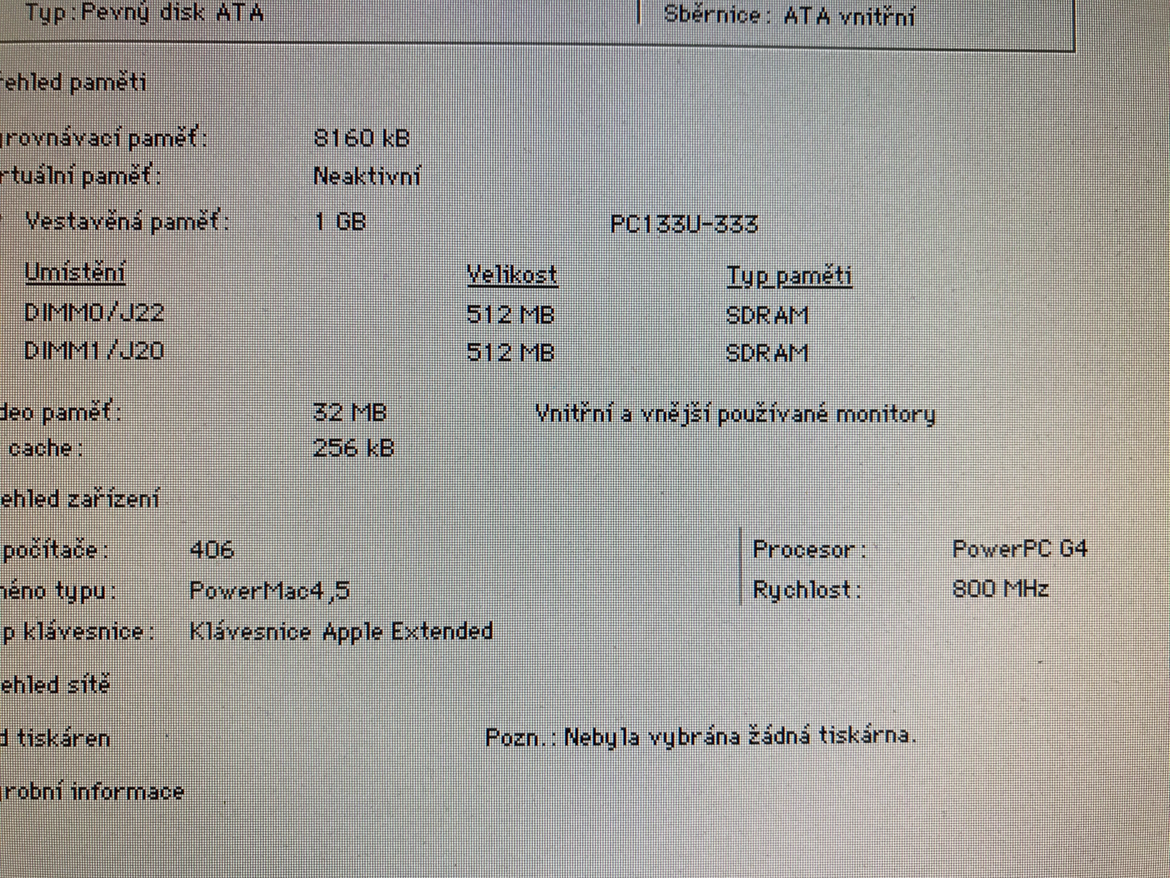 funkční, zachovalý s “devítkovým” systémem. V ceně repro, klávesnice International a nová Apple Mouse. Konfigurace na fotkách.