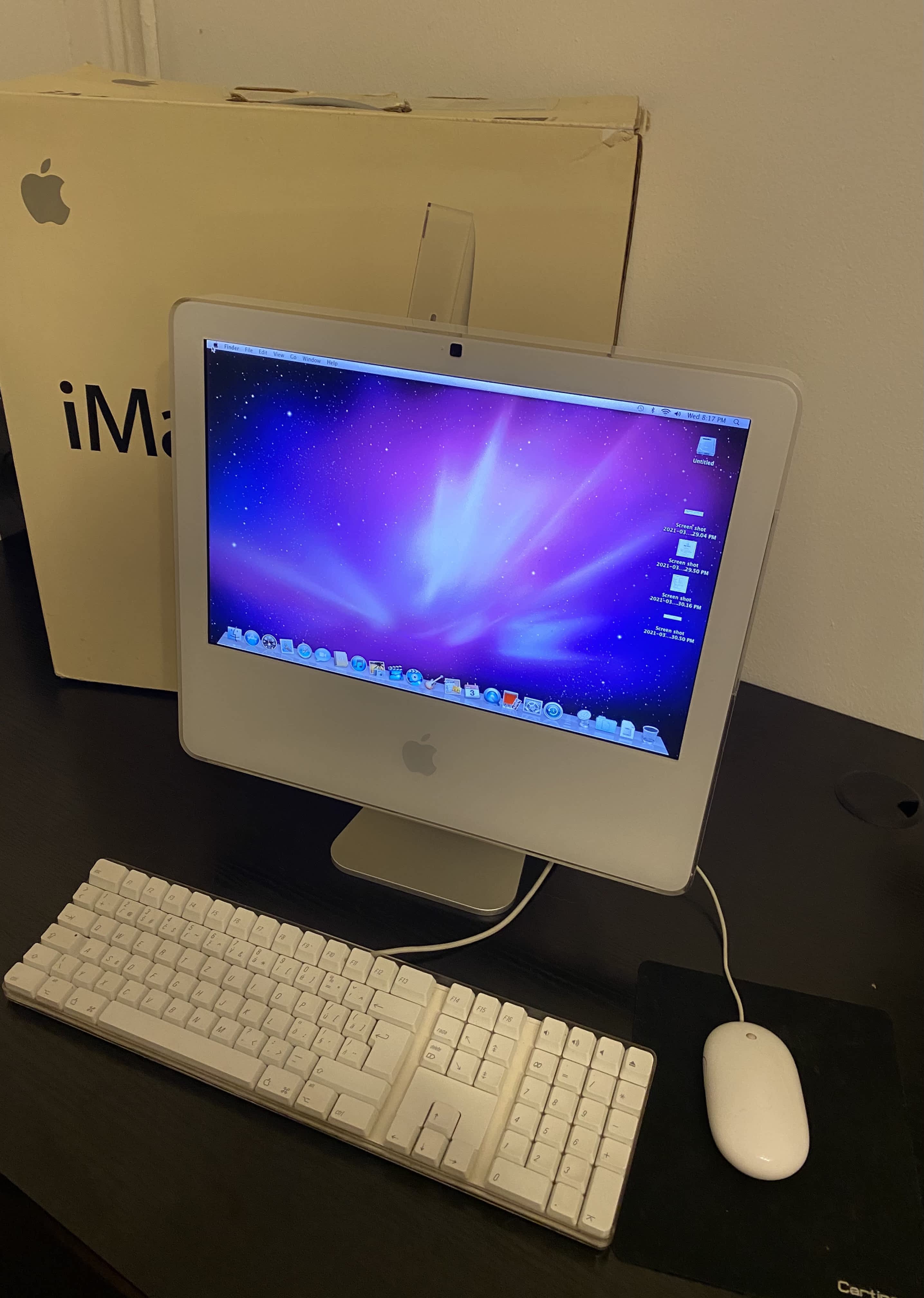 Prodám plně funkční 17inch iMac z roku 2006, je v hezkém stavu, žádné mrtvé pixely, běží plynule a svižně. Při prodeji obnovím software do továrního nastavení, jsem ochotný Vám iMac při prodeji plně představit.