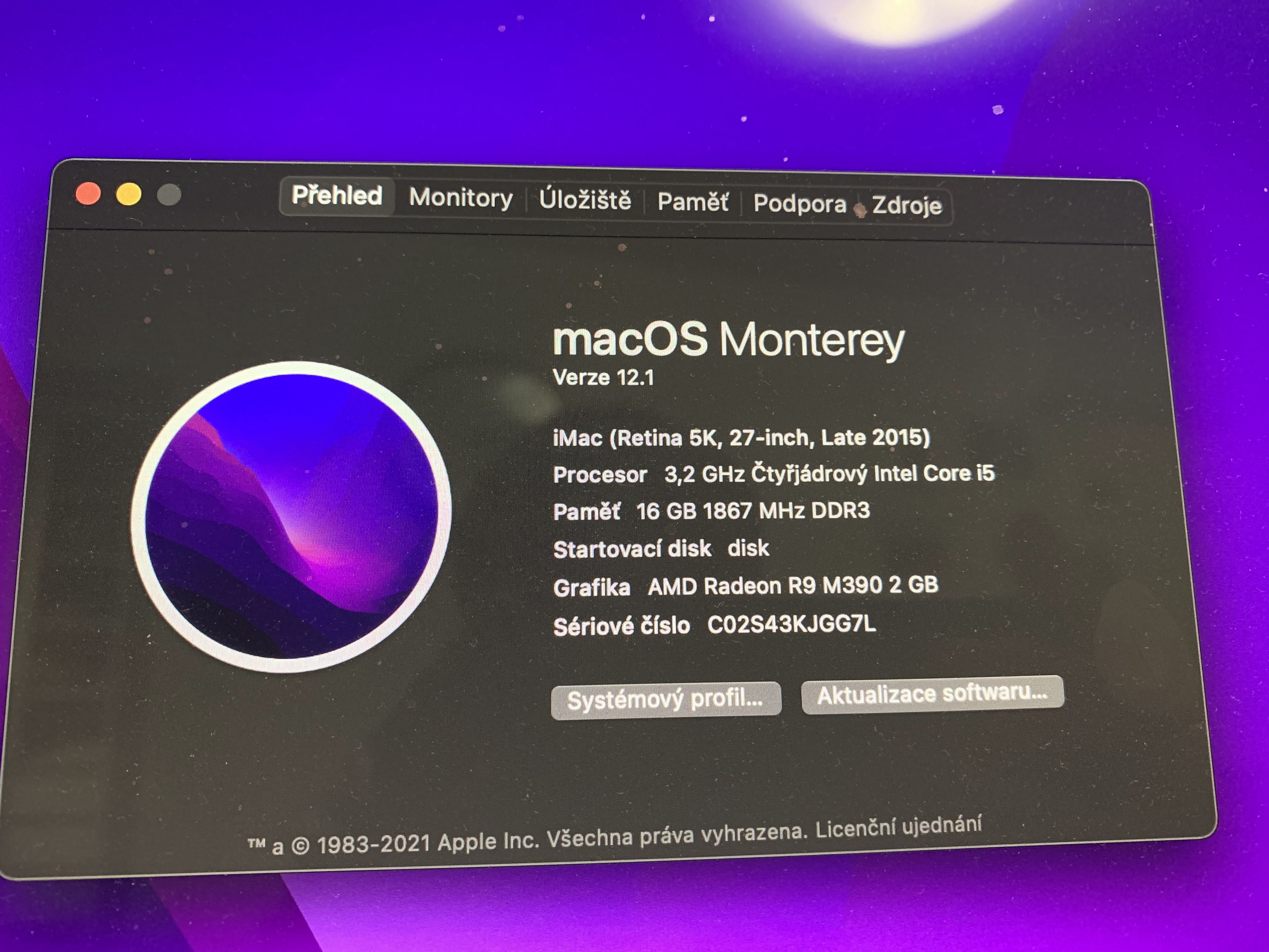 Je velmi svižný, nainstalovaný a podporovaný nejnovější MacOS Monterey. Všechno funguje výborně a rychle.