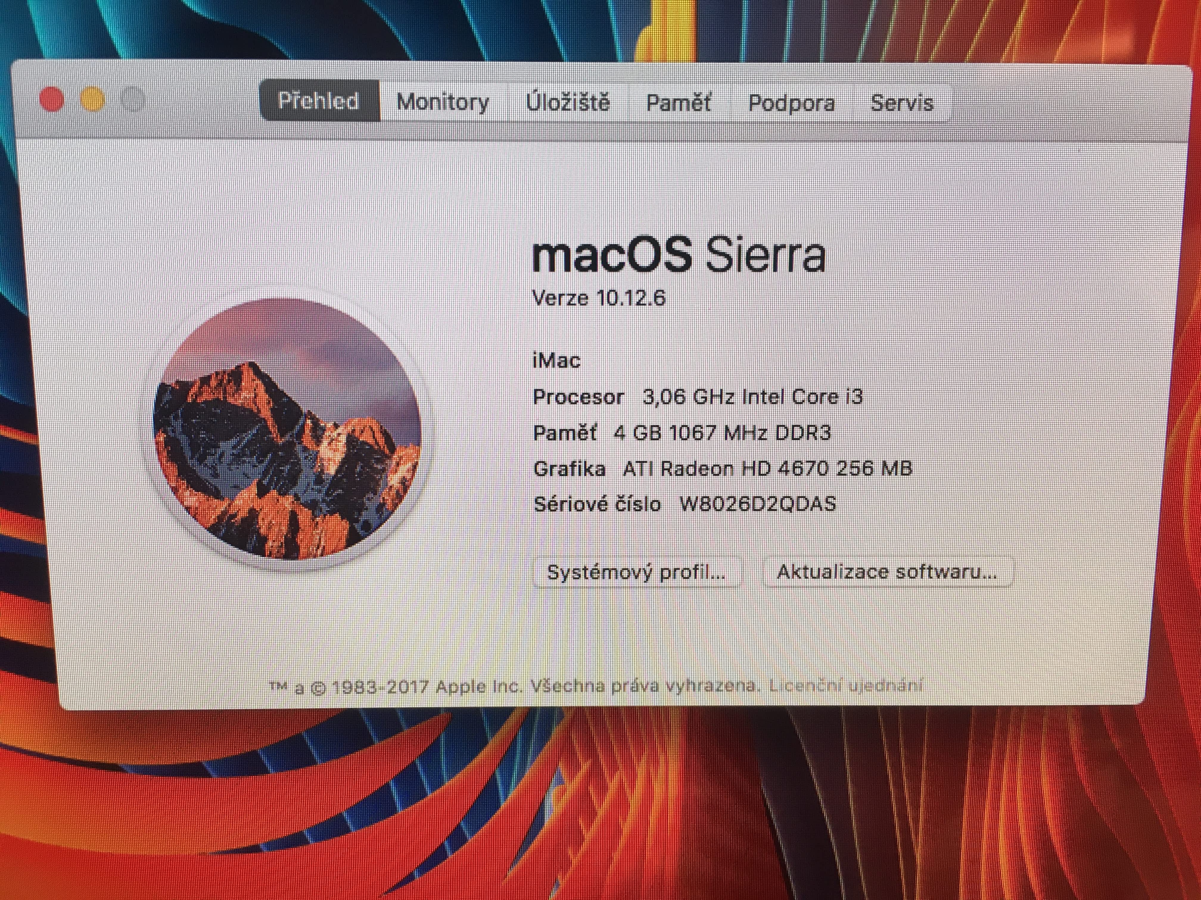 Apple iMac 21.5" rok 2010, procesor i3 3.06 GHz, pamet 4GB (mozno +4 GB za 500 Kc), disk 500 GB, graficka karta ATI Radeon HD 4670 256MB, nainstalovan system OS Sierra