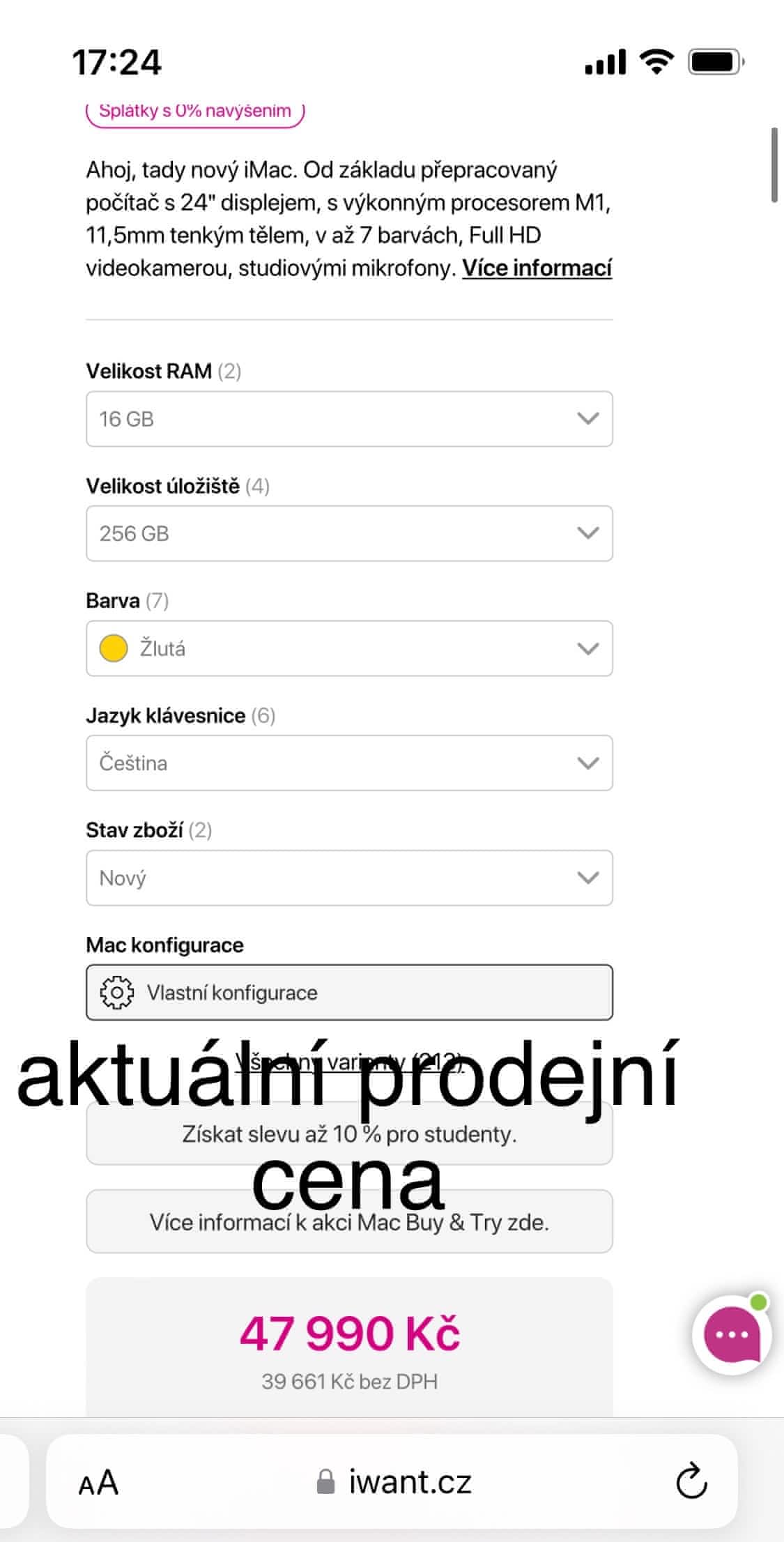 Rad bych prodal svůj iMac 24 žluto/zlatý