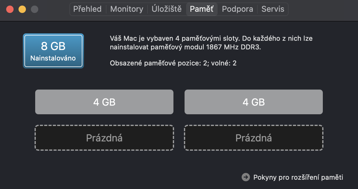 – Paměť 8 GB 1867 MHz DDR3 SDRAM