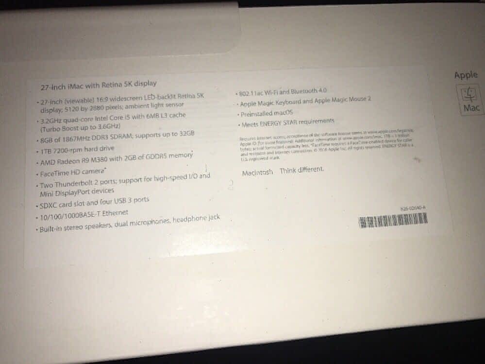 Apple iMac 5K A1419 27 "i5 3.2GHz 8Gb 1Tb Desktop – MK462B / A