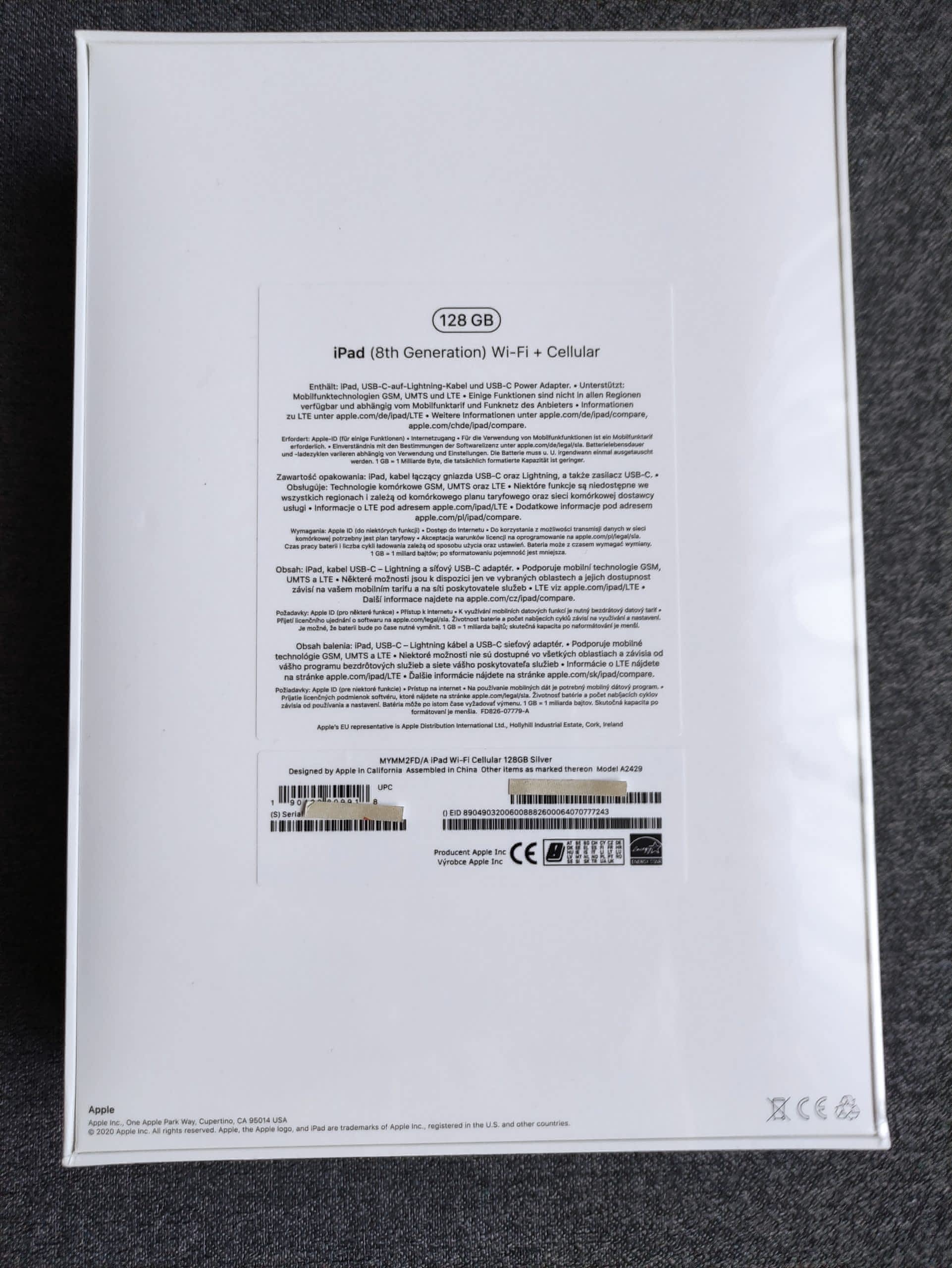 Prodám Nový!! zabalený Apple iPad 2020 (8 gen.), 10.2",128GB, Wi-Fi+Cellular,Silver