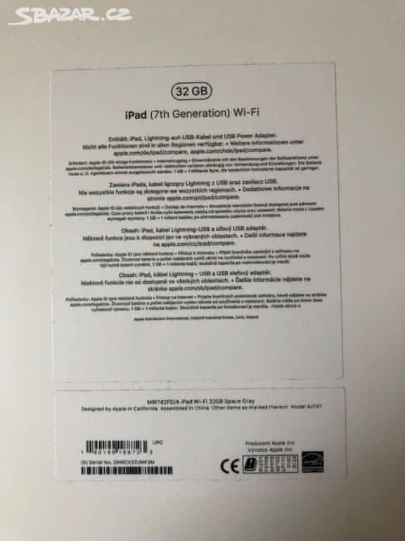 Prodám Apple iPad 7th 32gb v barvě vesmírně šedá.
