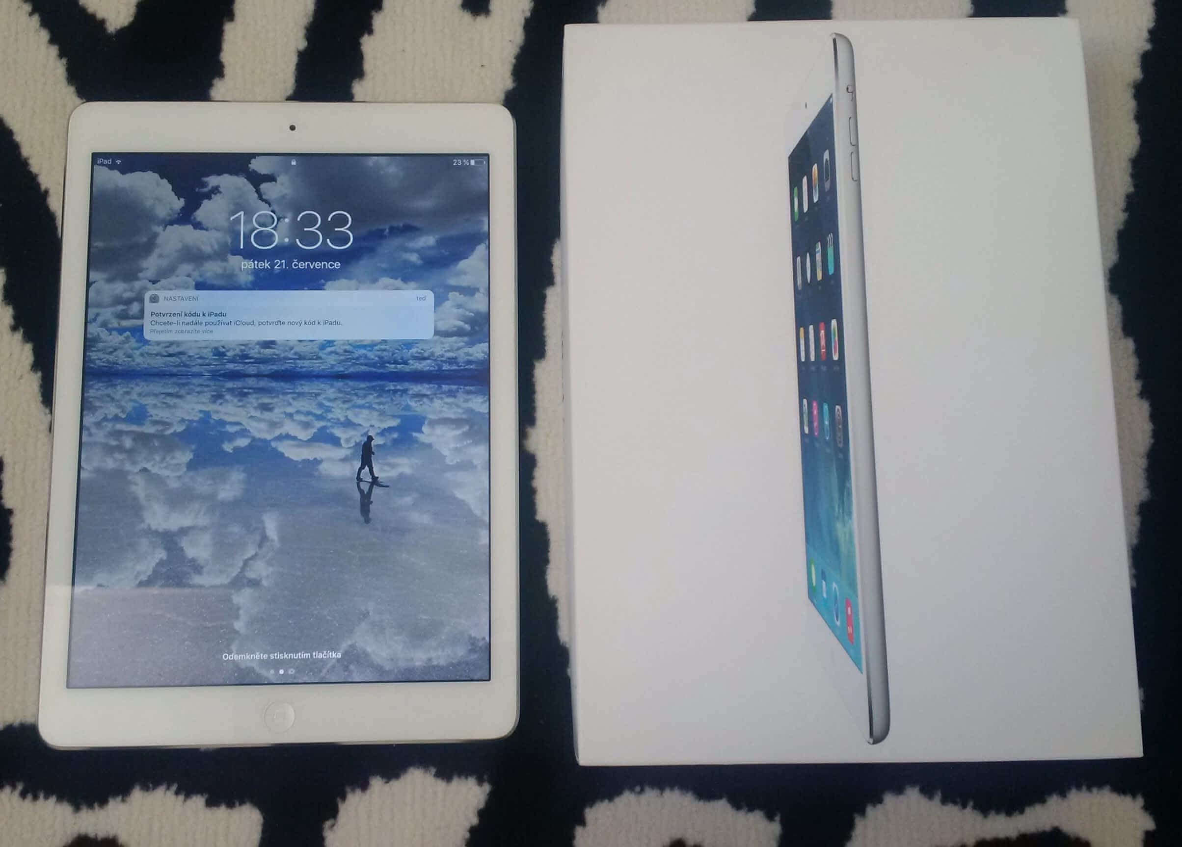 Nabízím k prodeji skvělého a hlavně spolehlivého a kvalitního pomocnika do školy/práce značky Apple, konkrétně tedy iPad Air 16GB Wi-Fi verzi ve 100% technickém i optickém stavu – nenašla jsem jediný šrám či škrábanec – je jako NOVÝ. Byl zakoupen v CZ distribuci (Alza.cz), staří necelé tři roky. Baterie stále vydrží 10hod+ při běžném použití. Součástí prodeje je originální balení – krabice, folie, nabíječka+datový kabel, doklad o koupi + navic nová bezdrátová klávesnice a kožený smart case ve skvělém stavu..