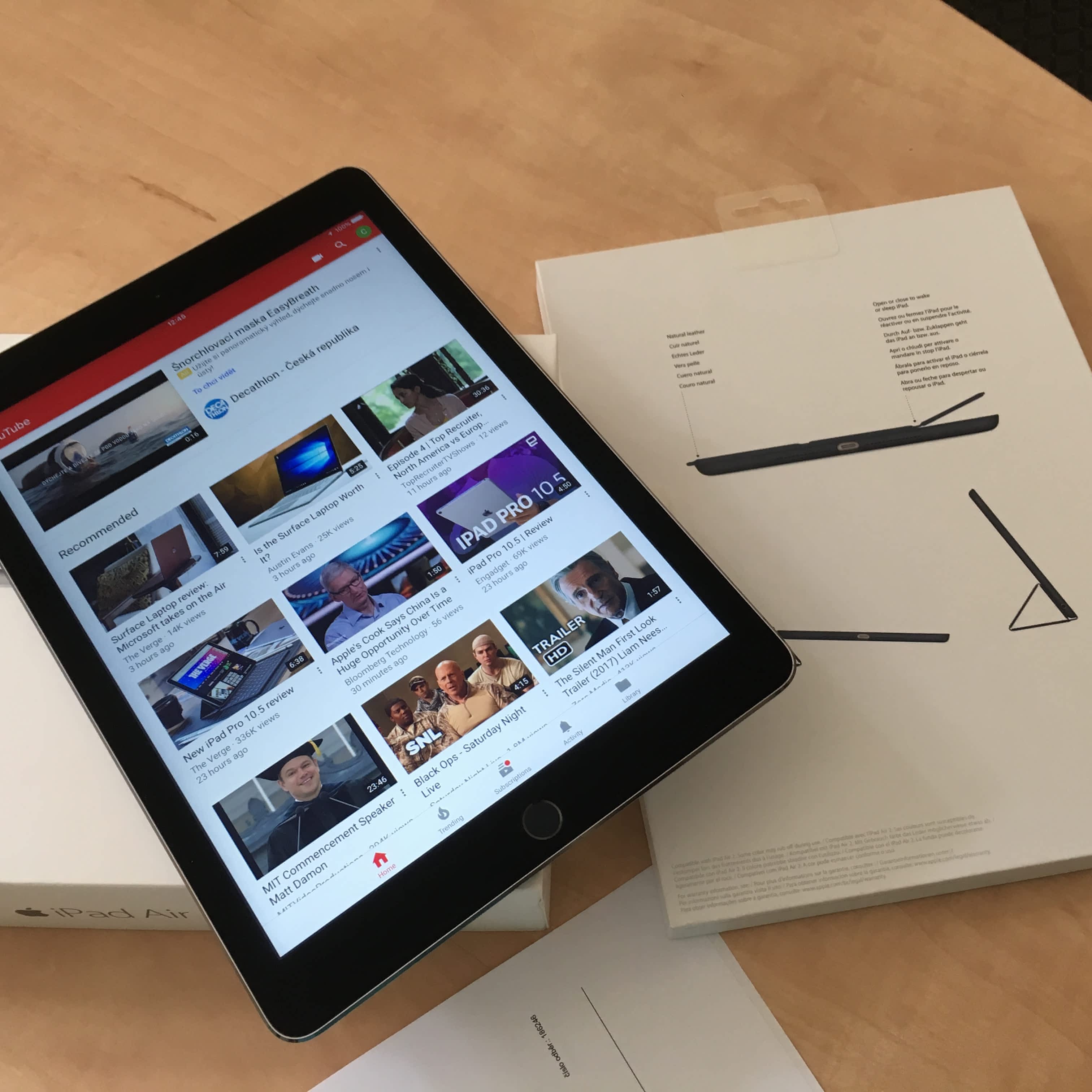 Prodám téměř nepoužitý (a celou dobu v pouzdře) iPad Air 2 Wifi v té největší kapacitě 128GB – ideální parťák na filmy na cesty v černé barvě. Přidám ještě originální Apple Leather Cover Black(původní cena 19780 Kč – iPad 17390 Kč a obalu 2390 Kč) nyní 11 999 Kč + přidám druhou nabíječku!