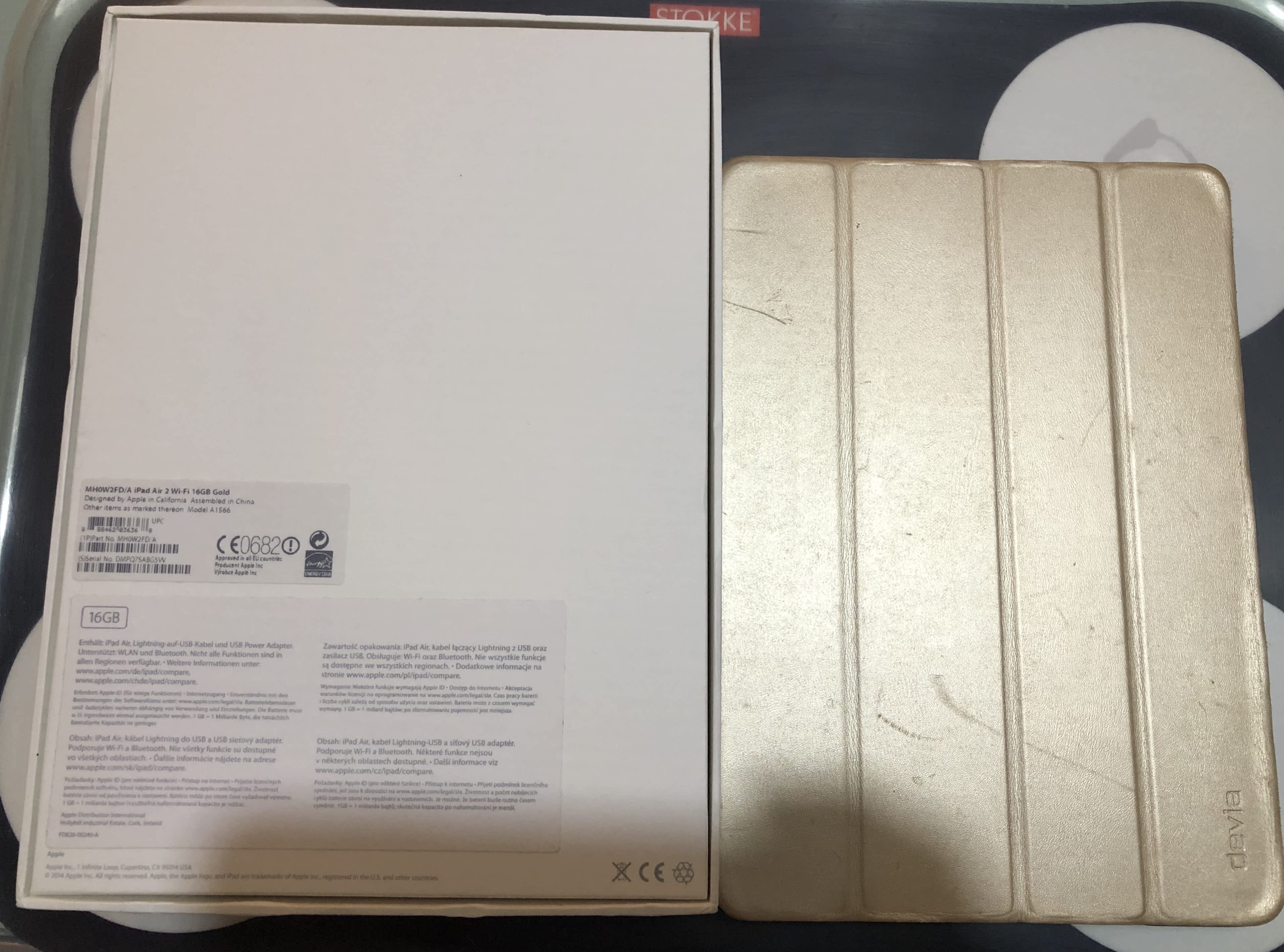 Prodám minimálně použitý a v obalu nošený Apple iPad Air 2 Wi-Fi 16 GB gold + zlatý kožený obal. Koupeno 4.12. 2015 v i Stylu. Původní cena 13 490,- + obal 1 990,-.