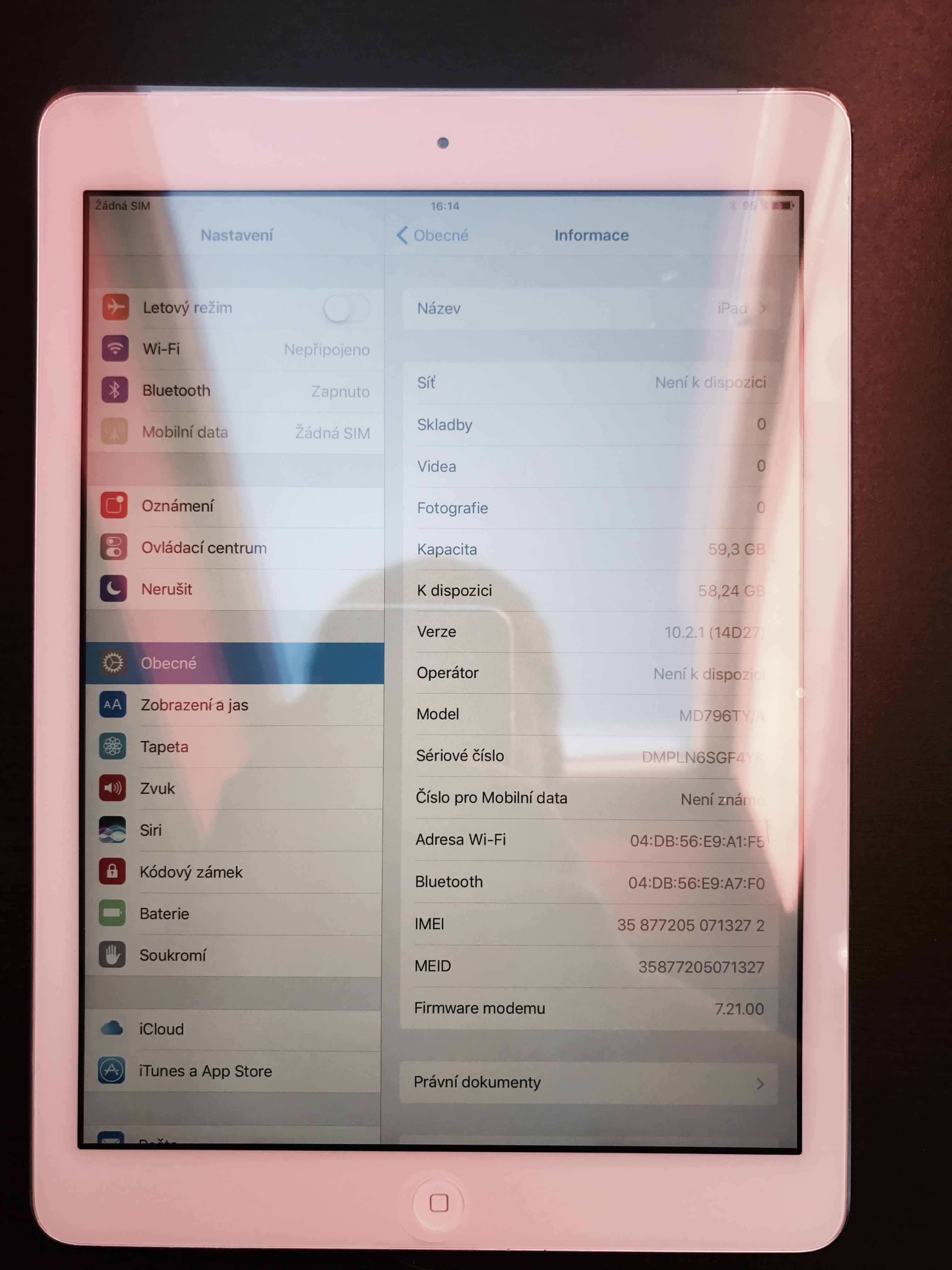 Tablet je plně funkční, samozřejmě při převzetí nabízím možnost kompletního vyzkoušení včetně obnovy systému – iPad je nyní aktivovaný bez přihlášeného iCloud účtu (iCloud odhlášen)