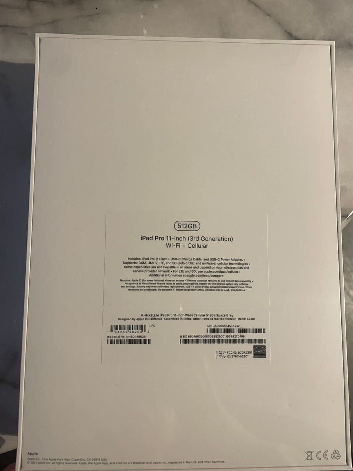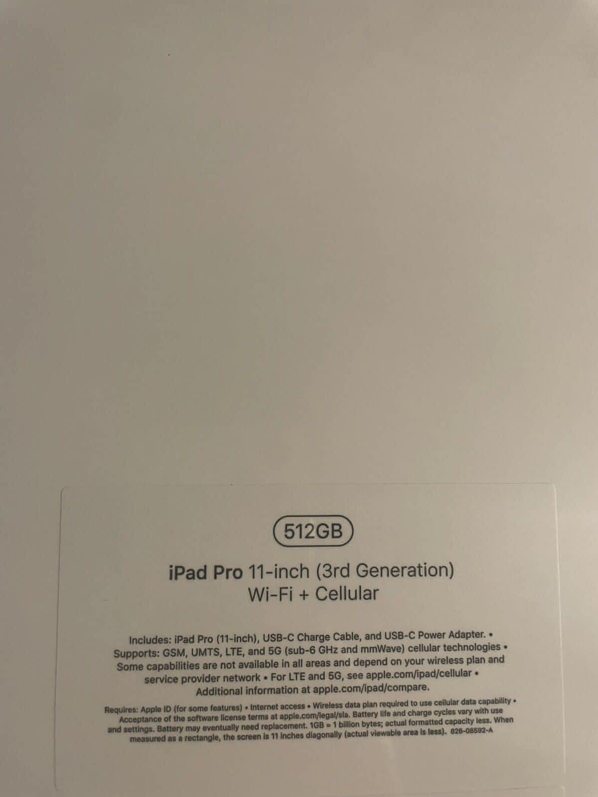 Apple iPad Pro 11in 3Gen 512 GB Wi-Fi 5g