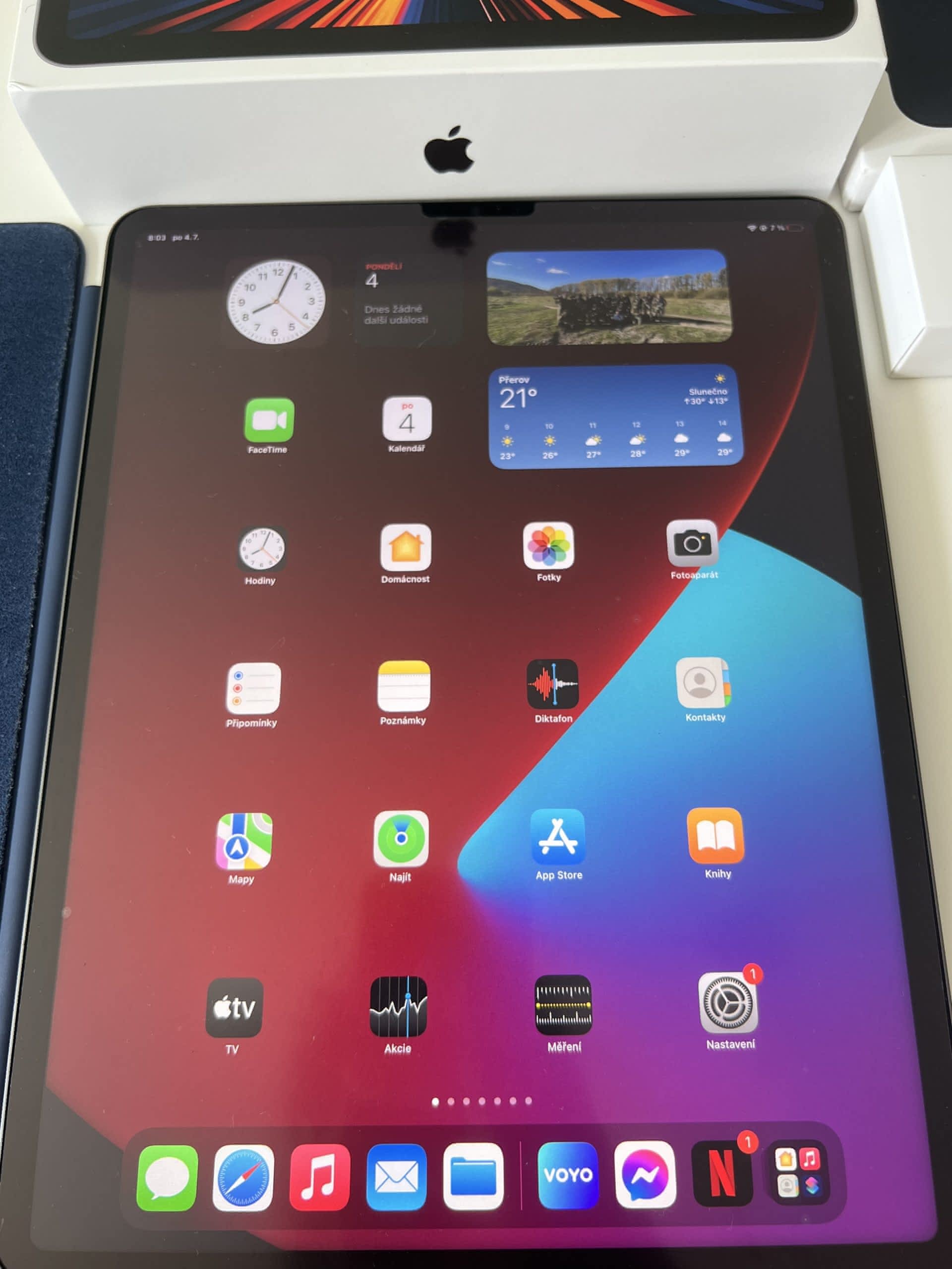 Prodám iPad Pro 12,9 128 gb rok 2021 kupován 22.7.2021 čili rok ještě záruka. Tablet je osazen v originálním Apple krytu. Na tabletu je nalepena speciální folie, která má povrch stejný jako papír. Je určena na malování. (lze běžné používat.) K tabletu je Apple Pencil 2 generace. Vše je stále v záruce. Ke všemu je originální krabička, samozřejmě faktura. Původní cena byla okolo 38-39tis. Lze nafotit více fotek či videa funkčnosti. Důvod prodeje je takový že kvůli práci jsem neměl čas na malování. Používaný převážně na netflix. Preferuji osobní předání. Jsem ochoten poslat na dobírku, ale záloha předem. Nepište mi ze za 25 a níž ze to hned berete. Slevit jsem schopen při rychle a normální domluvě.