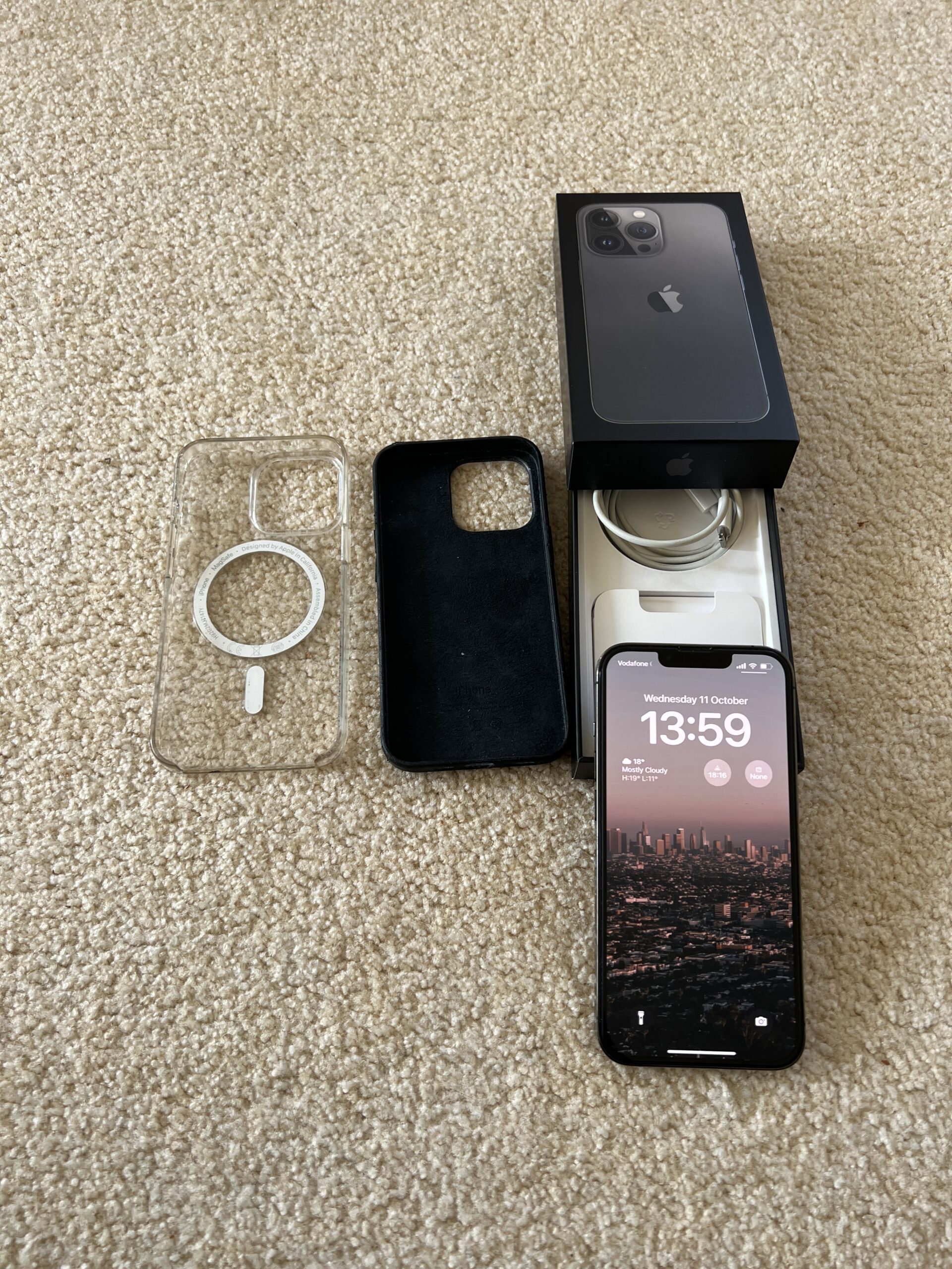 Prodám iPhone 13 Pro 256 GB v šedé barvě Graphite. Telefon je v perfektním stavu. Záruka platí ještě měsíc do 11/23. Od začátku nošen v pouzdře a ochranným sklem (nechávám na telefonu, ať si ho můžete případně nechat). Zdarma přidávám dva Apple kryty, jeden kožený a jeden průhledný, kryty nesou známky používání ale telefon perfektně ochrání.