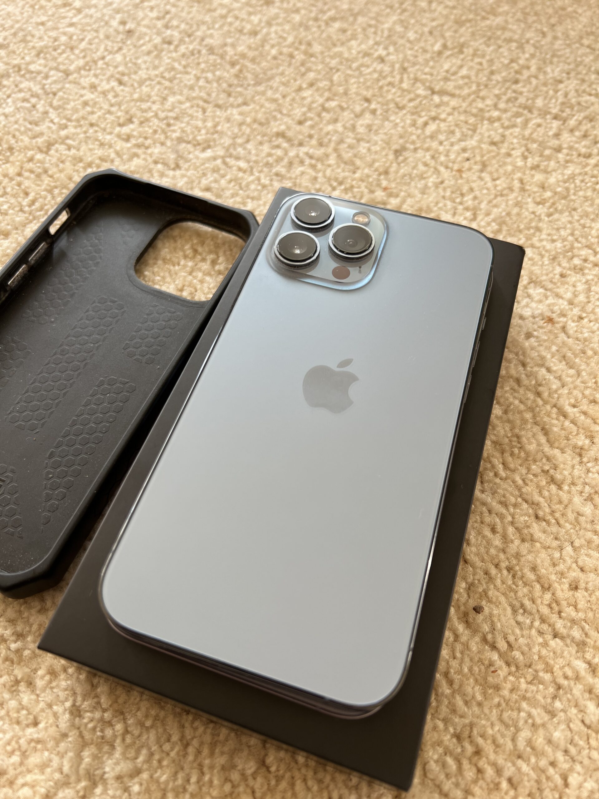 Prodám iPhone 13 Pro Max 256 GB v modré barvě Sierra Blue. Telefon je v perfektním stavu. Záruka platí ještě měsíc do 11/23. Od začátku nošen ve vysoce odolném pouzdře UAG Monarch a ochranným sklem, obojí přidávám zdarma.