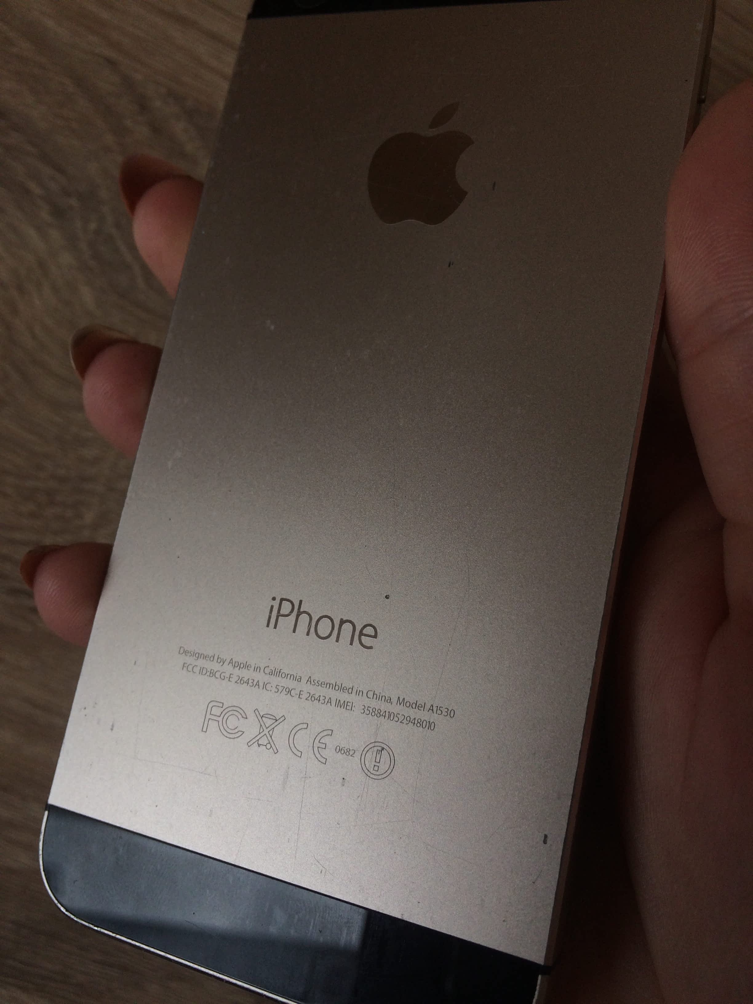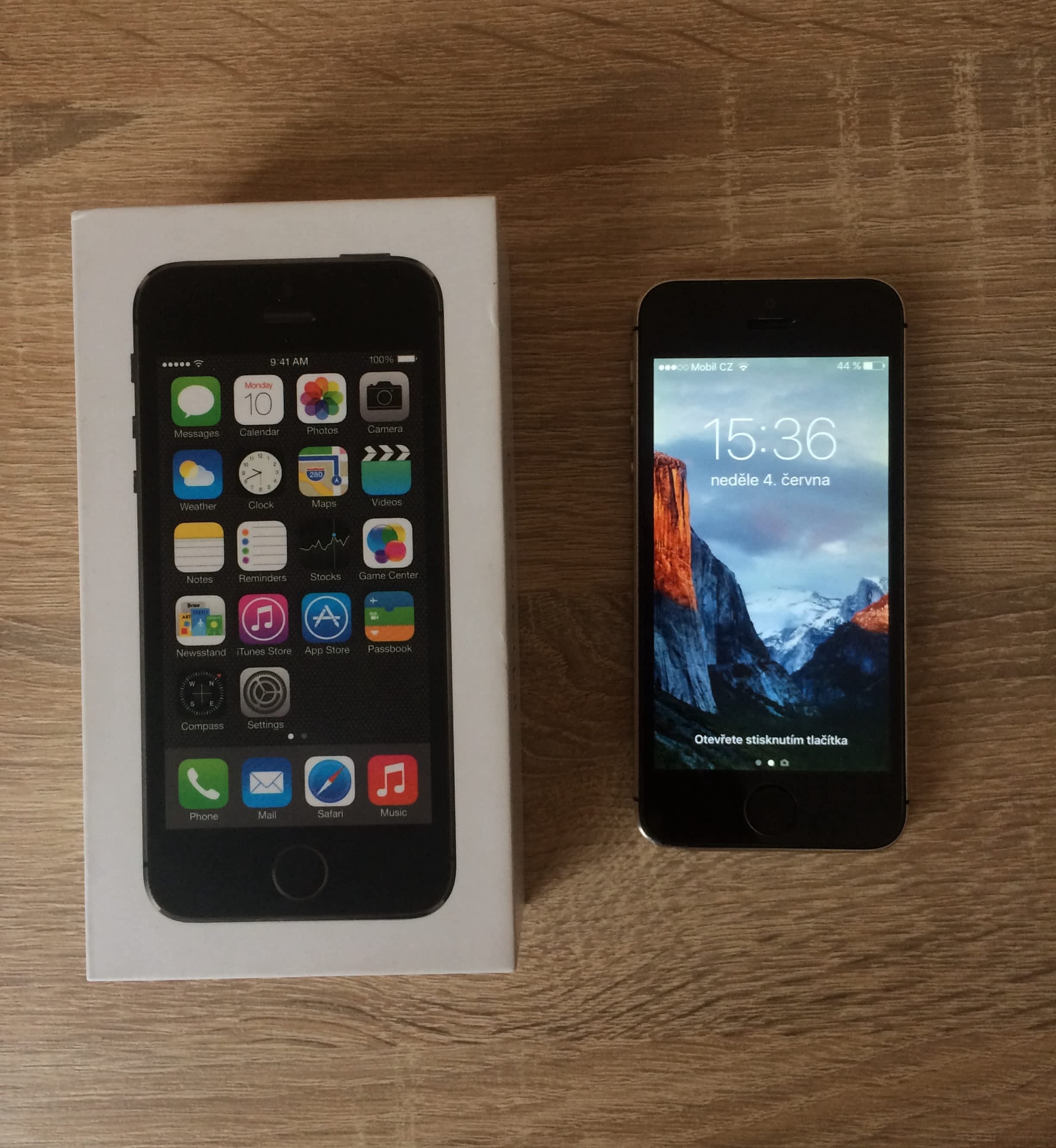 Nabizim pouzity Apple iPhone 5S černe barvy se se zlatymi zady. Pred pul rokem byla vymenena baterie, takze nyni ma dlouhou vydrz. Nefunkcni otisk prstu – homebutton funguje. Na displayi nalepene temperovane sklo.
